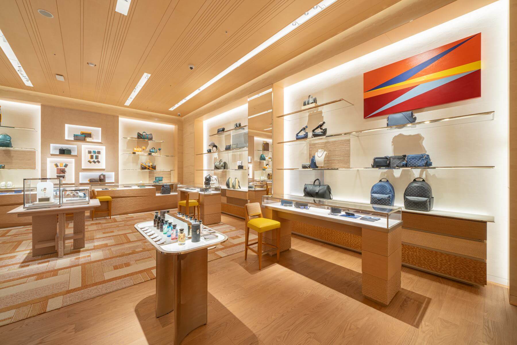全新改裝落成的三層樓專門店總計158坪 (522平方公尺)。走進一樓,多款女士全新包款映入眼簾,右邊為高級香水區、皮件飾品區以及旅行主題區,左邊則為男士精選皮件飾品區以及高級腕錶區。本區亦點綴多幅藝術以及攝影作品,如中國藝術家王智一、美國當代藝術家詹姆斯.特雷爾James Turrell;法國攝影師Eric Valli掌鏡的《旅行的精神Spirit of Travel》形象廣告則捕捉路易威登硬箱佇立於廣袤的湖邊以及水上飛機的詩意景象,而表彰路易威登旅行藝術演進的歷史掛畫亦相襯其中。