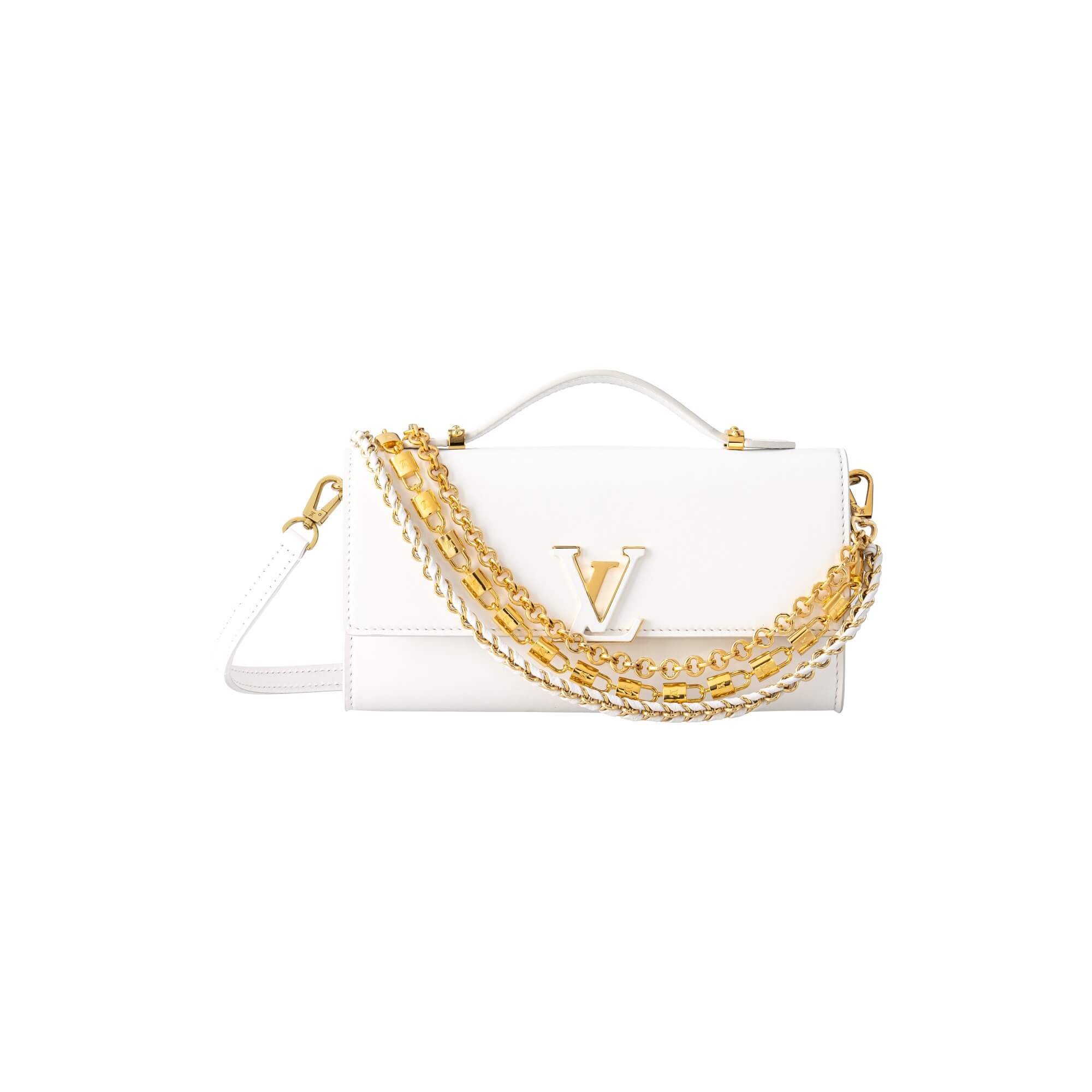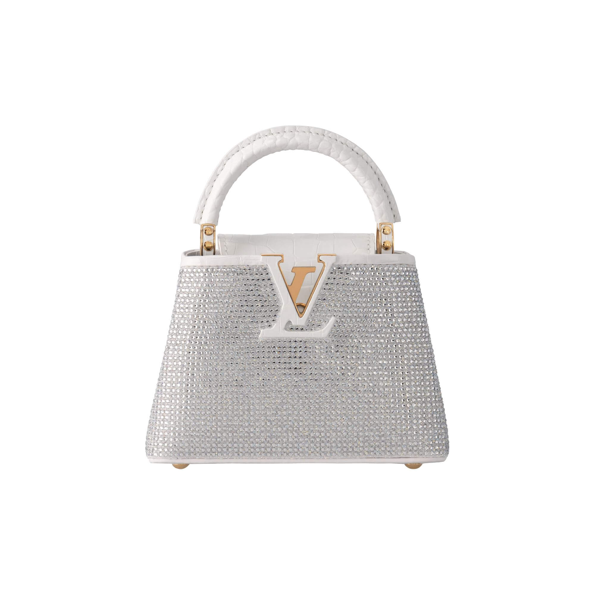 女士獨家商品包括Capucines Nano包身採用緞面打造,飾有超過 4,500 顆水晶。手把和翻蓋採用珍貴的柔軟光澤白色鱷魚皮製成,並獨家配以Monogram包款收納硬箱;Wallet On Chain Capucines採用柔軟光滑的小牛皮製成,飾有Monogram花卉圖案磁扣以及三條可拆式鏈條。
