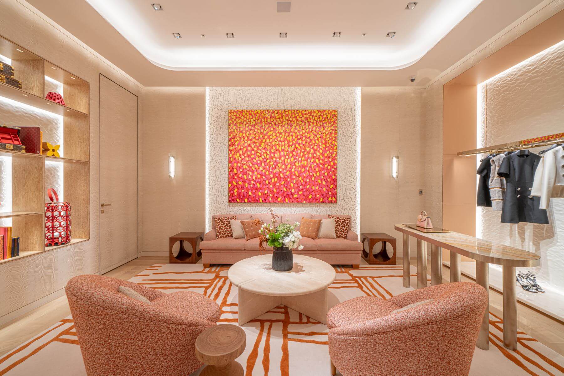 三樓則為女士專區展示女裝、鞋履、高級珠寶、腕錶以及VIP貴賓室。壯觀的凱旋門硬箱塔映入眼簾,空間設計的選材如編織皮革牆面、來自法國藝術家暨設計師蘇菲.馬勒布朗奇Sophie Mallebranche打造的精鋼金屬絲編織網,以及來自法國的Nobilis手工壁紙等。本區亦點綴多幅藝術作品,如美國藝術家朱莉婭.鮑爾斯Julia Powers、西班牙藝術家費爾南多·達薩·費爾南德斯Fernando Daza Fernández、美國藝術家比爾.斯通Bill Stone,流露優雅嫻靜的氛圍。
