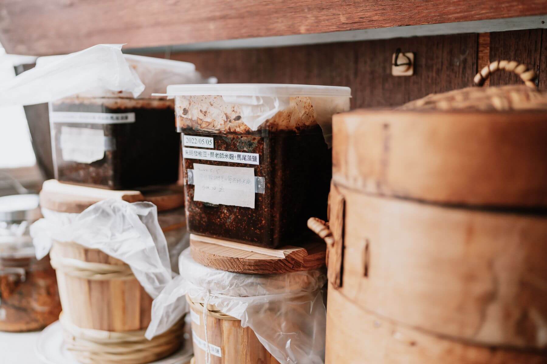 她在家中使用各地食材,如高雄田寮農友朱明發的樹豆、屏東車城鄉的馬尾藻鹽,用來自製樹豆味噌、蔭冬瓜等。