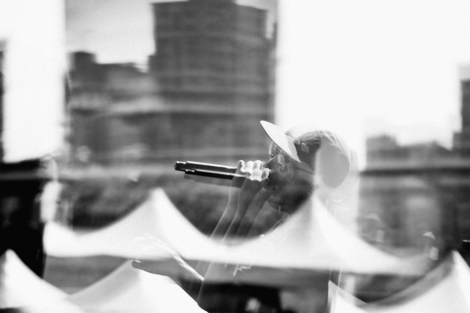 日正當中,一襲黑帽、黑T-shirt的Lu1開口便讓燥熱的空氣緩和下來,觀眾不畏艷陽往台前聚集,抓住這難能可貴的30分鐘,隨著扎實的節奏、韻腳和靈動的爵士音樂搖擺。