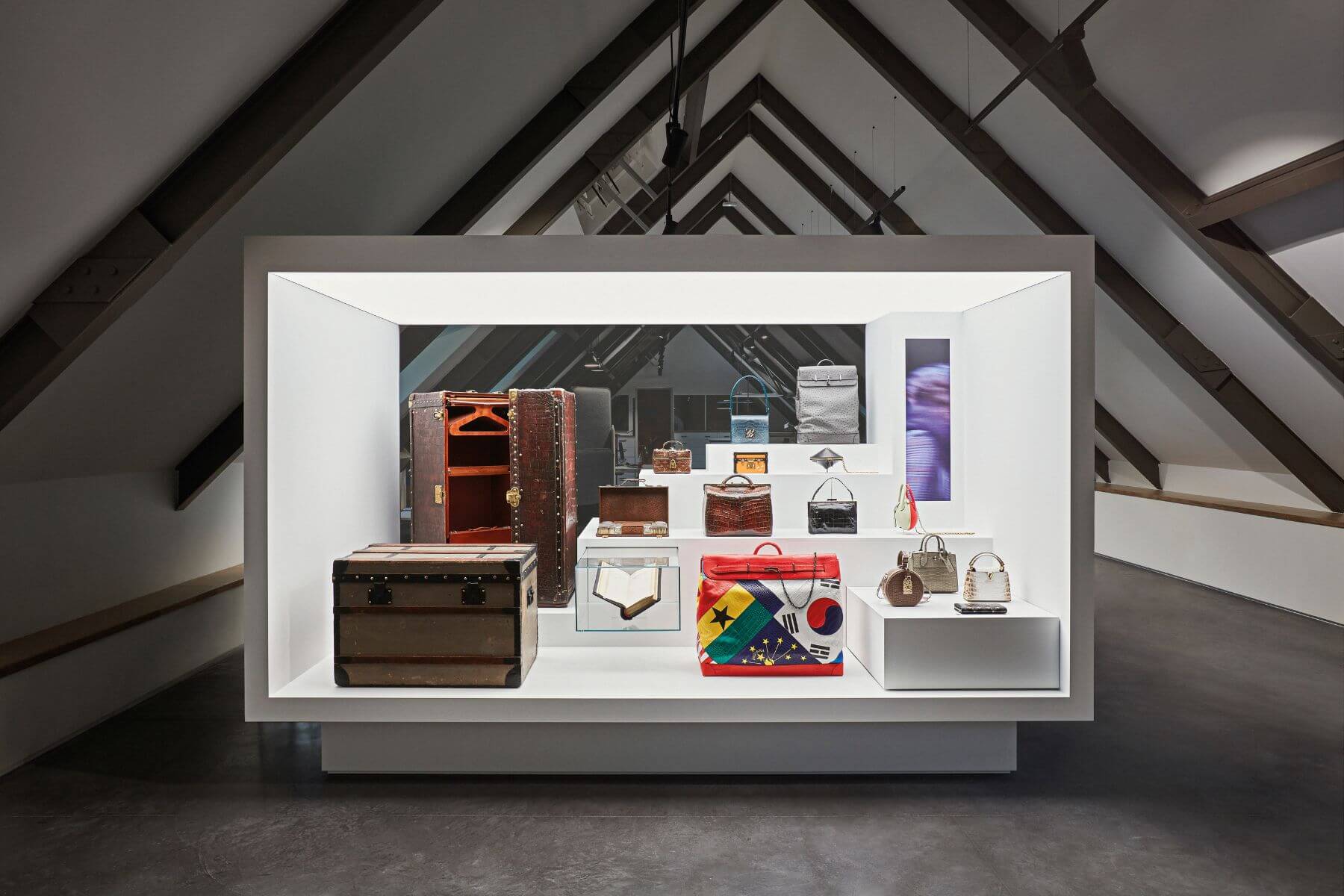Louis Vuitton 2023「珍稀皮革展」於國立臺灣師範大學美術館展出,展期從8/9~8/13,採VIP預約鑑賞,圖為女士專區與工匠桌區。