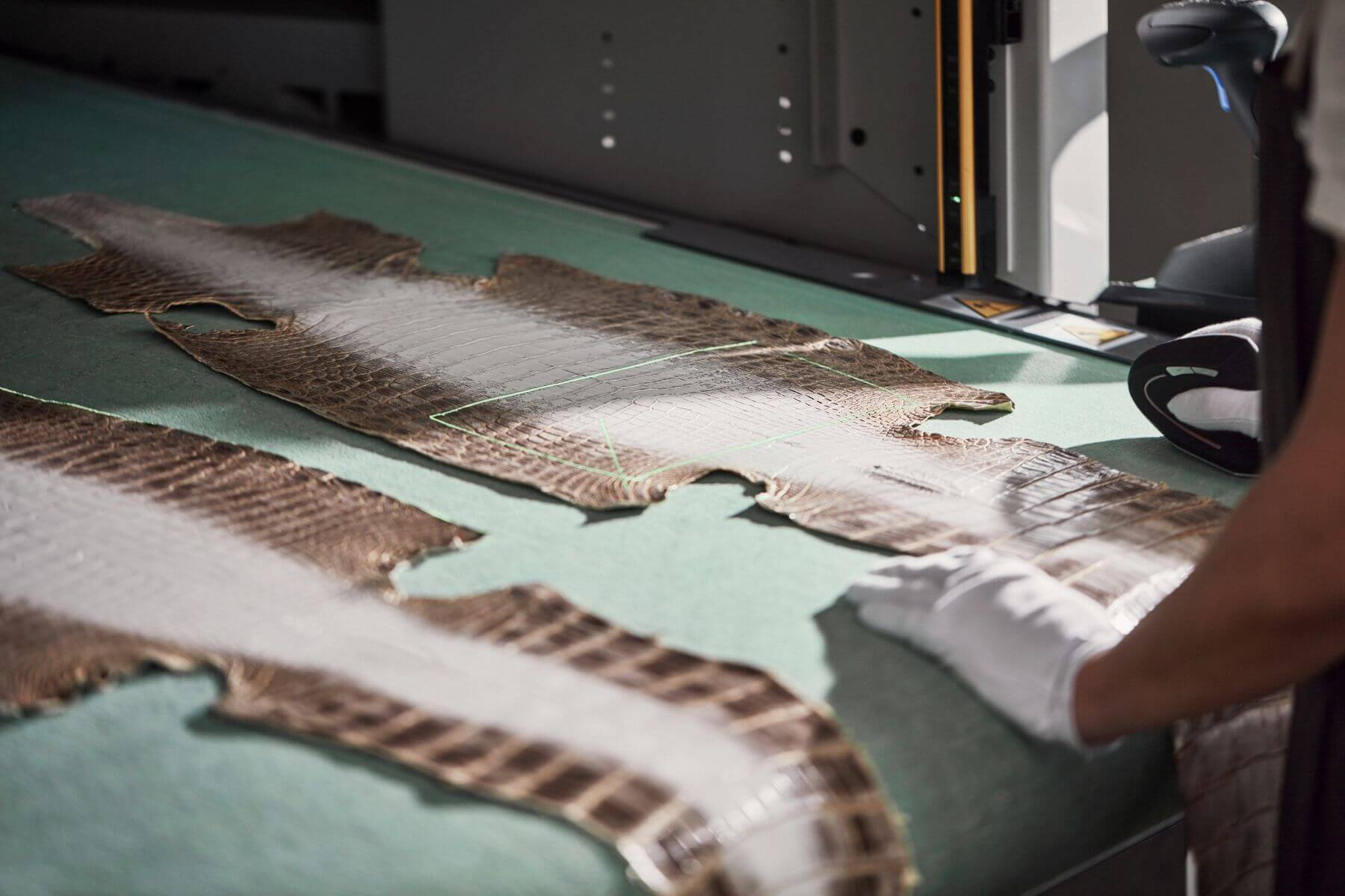 為每種包款覓得最合適的特殊皮革可說是極具挑戰的耗時過程。為了開發出完美染色配方,平均必須進行15次不同試驗,如此才能達到Louis Vuitton設計團隊的理想色彩,皮革也須經過嚴格篩選,得以讓每個手袋邊緣的鱗片紋路都能相接,然後小心翼翼確保所有表面顏色和光澤完全吻合。