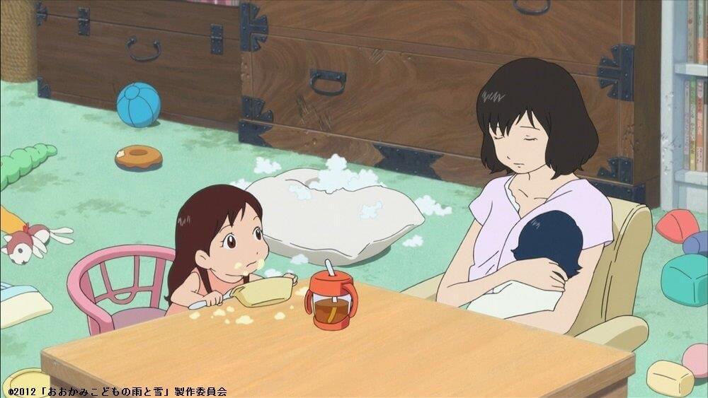 2012年,細田守首次創作劇本,與編劇奧寺佐渡子共同完成。雖有家庭元素,但有別於前兩部作品探索日本高中生的現實生活,《狼的孩子雨和雪》則聚焦在母子主題,故事是一名19歲的女大學生愛上狼人,並生下了兩個名字叫雨和雪的孩子,他們具有人和狼的特徵。電影透過單親家庭養育孩子的經歷,展現母愛的力量和孤獨,同時也講述了不平等和歧視的社會。