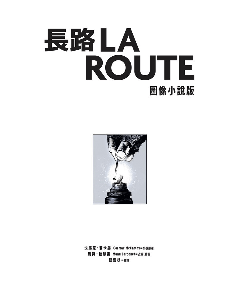 當文字的長路走到盡頭,圖像的故事才正要啟程。這部經典作品獲得了麥卡錫生前親自授權,在法國圖像藝術家馬努.拉瑟雷(Manu Larcenet)的畫筆詮釋下,首度以圖像小說的形式重生。拉瑟雷曾向作者寫信說:「我並非要改寫您的故事,或改變原著的氛圍,僅僅是想畫出您所寫出的一字一句。」這份對原著的崇高敬意,成為他創作的起點。