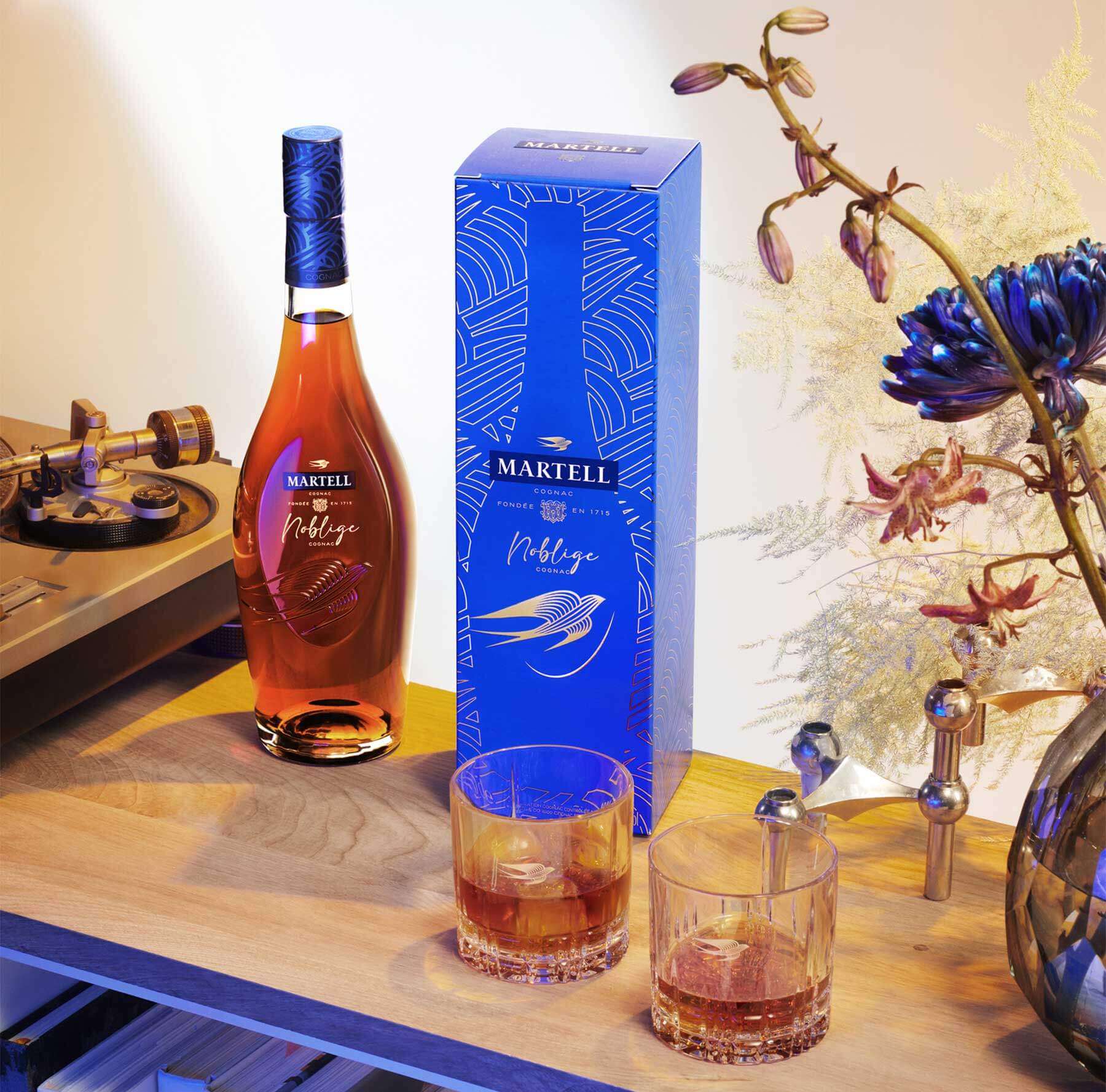 酒款亦與時俱進,以全新包裝現身。經典馬爹利藍色調為底,盒身繪製上抽象風格燙金線條,與金色手書「Noblige」,設計大膽創新。流線感的瓶身設計與飛翔的雨燕浮雕,在光影間,與電影巨星互相輝映閃耀,體現飽滿生命能量。