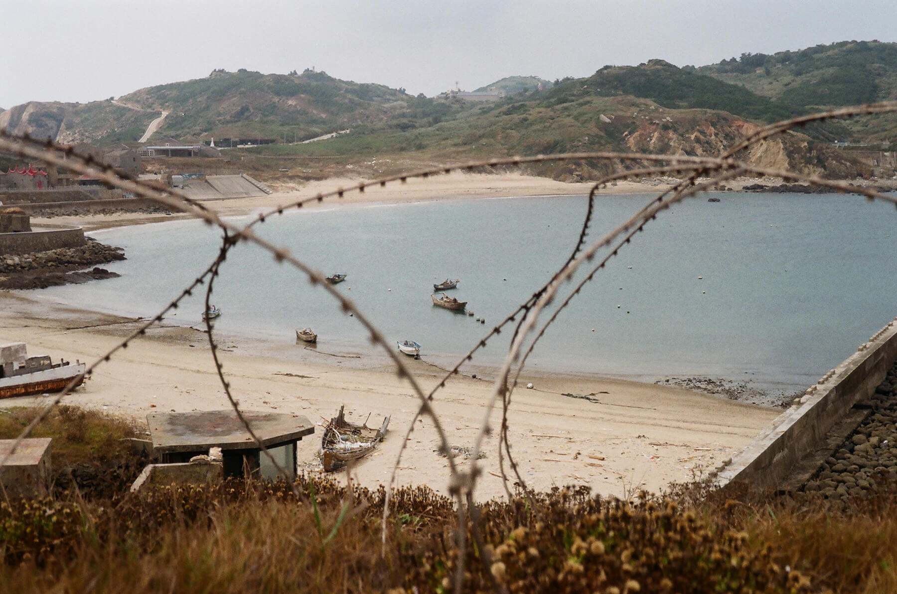 穿過鐵絲網看向東莒島的福正沙灘(圖/邱筠攝影)
