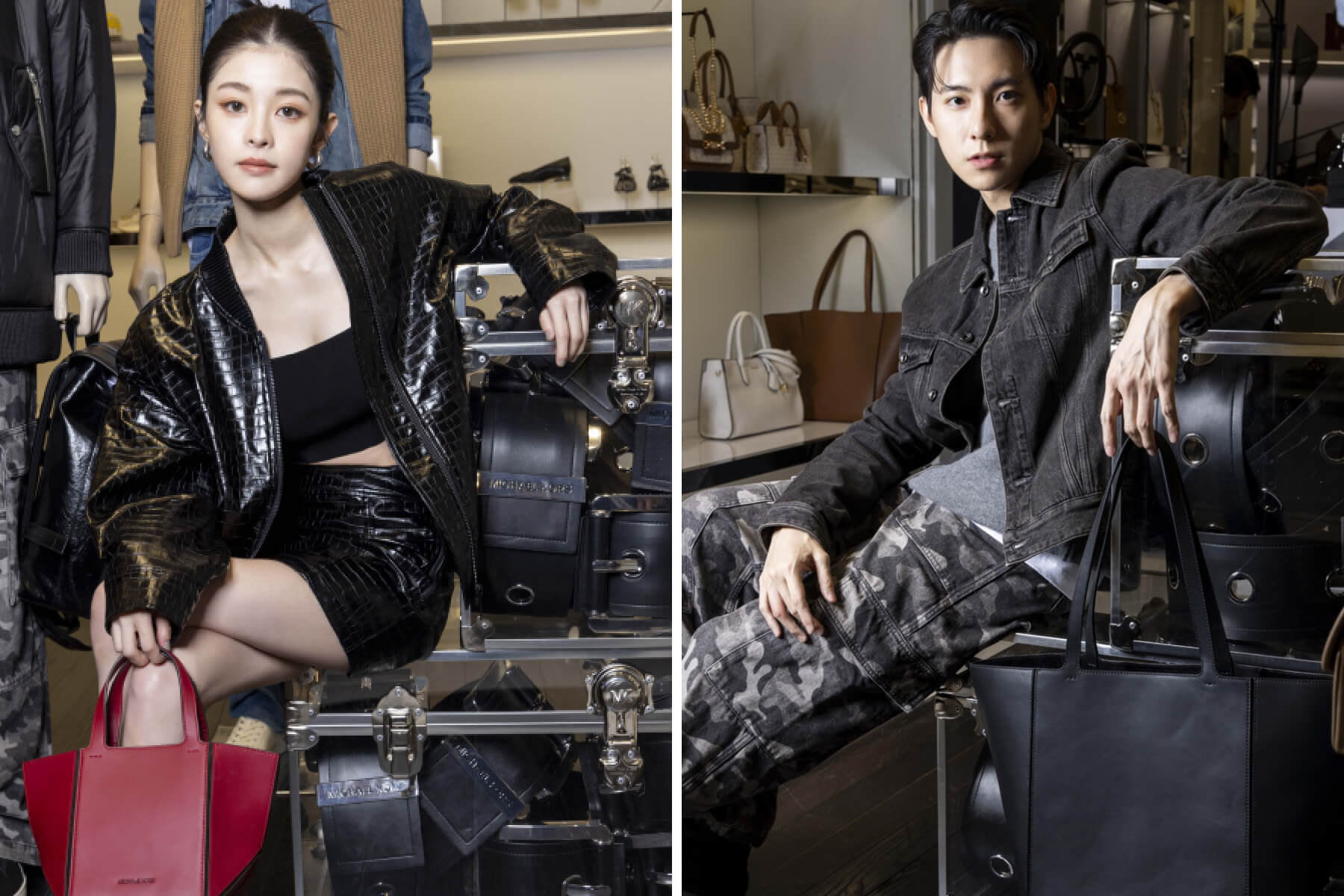 為慶祝全新秋冬系列上市,Michael Kors 在台北 101 旗艦店舉辦盛大發表派對,邀請邵雨薇、婁峻碩、詹子萱及彭千祐等明星共襄盛舉。本季服裝大量運用黑色與丹寧元素,品牌經典黑色西裝被賦予更多可能性。邵雨薇內搭水洗丹寧馬甲背心,為整體造型增添時尚氣息;詹子萱則選擇寬大版型仿鱷魚壓紋外套與迷你裙,完美演繹甜酷女孩風格。