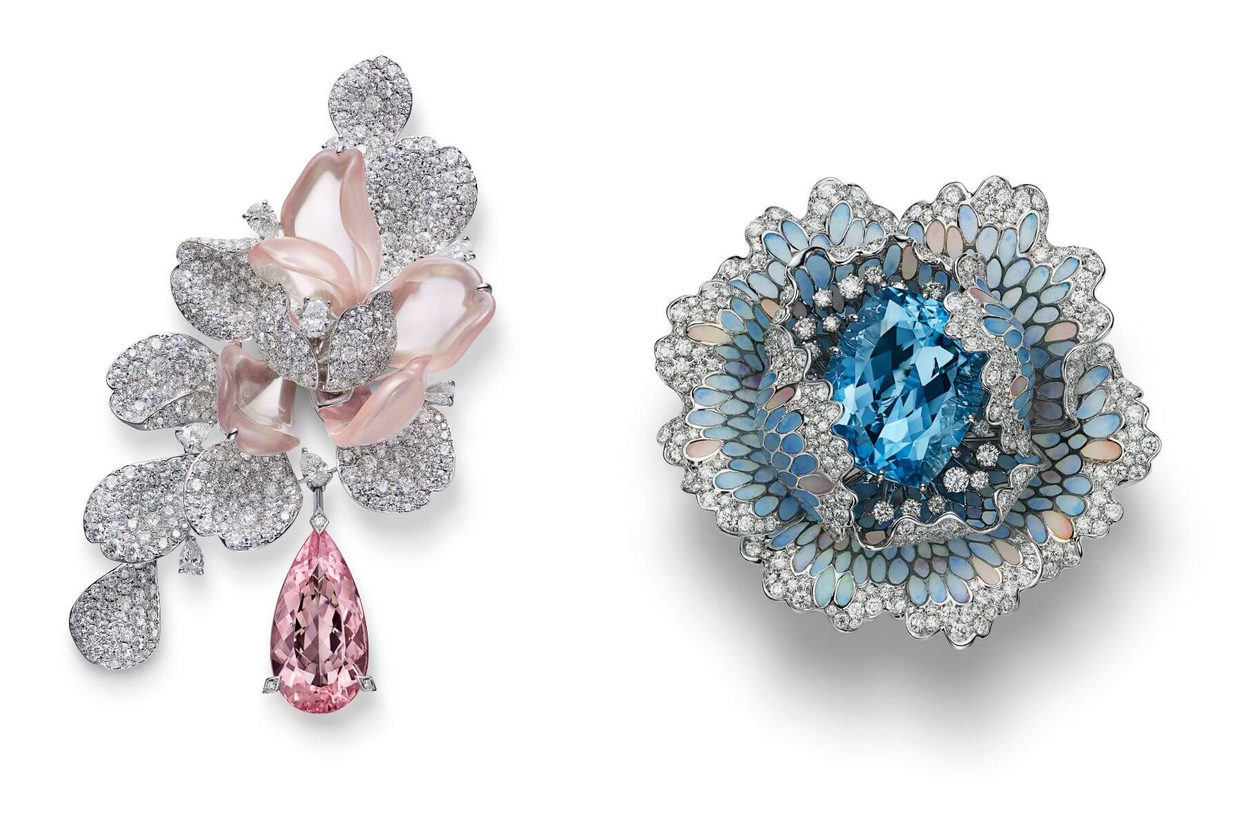 Les Pétales 系列精準捕捉了巴黎凡登廣場花瓣隨風翩然起舞的姿態 。透過精湛的 18K 金雕與大克拉彩色寶石——如 10.99 克拉粉紅摩根石玫瑰水晶鑽石胸針 與 20.48 克拉海水藍寶鑽石胸針 ,MIKIMOTO 以無與倫比的高超工藝,將自然界中嬌弱花瓣的靈動瞬間,定格為跨越時空的珠寶傑作 。品牌特別將展覽場地打造為春日珠寶花園,讓這些鑲嵌珍稀寶石的花朵作品在其中绽放,呈現匠心獨具的設計美學。