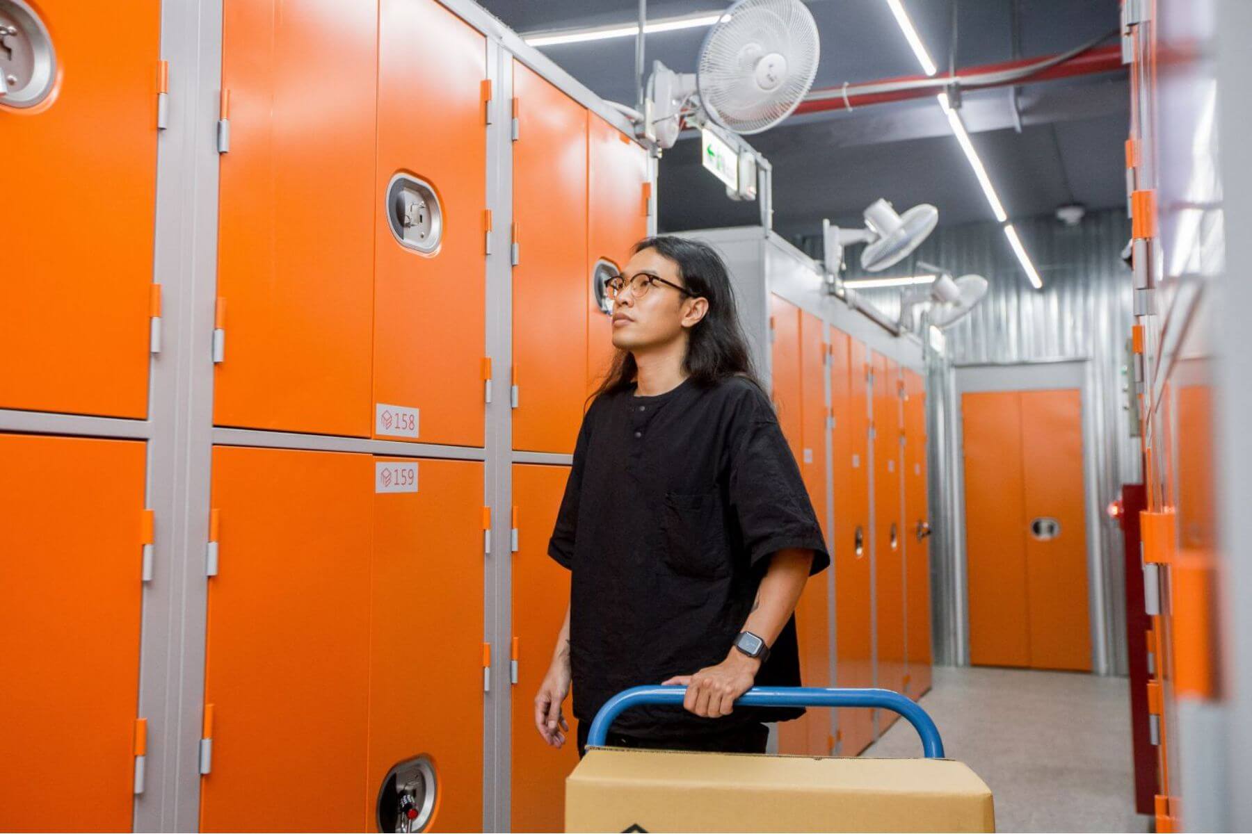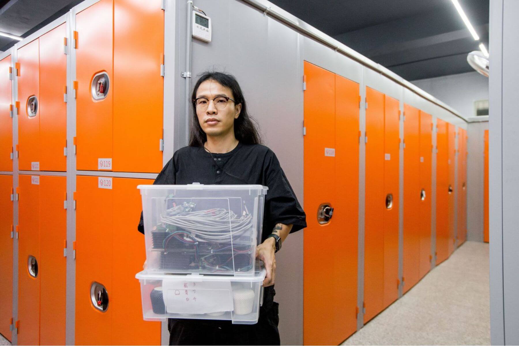 「我在國外就有過個人倉庫的租借經驗,也想過直接租用工業區的大廠房,但那些空間陰暗、粉塵多,簡陋的鐵皮屋無法控管儲物環境,讓人沒辦法放心存放物品。」但摩爾空間不管是走道,或是任何一個角落空間,都維持得非常乾淨、明亮,並且長時間維持60%以下的濕度控制,及全天候24小時監視錄影,讓闞凱宇可以安心地將所有短期內不會用到但非常重要的工具和作品存放在此,「像機械設備都非常昂貴,一碰水就可能整組報銷,摩爾空間的全天候濕度控制讓我很放心。」