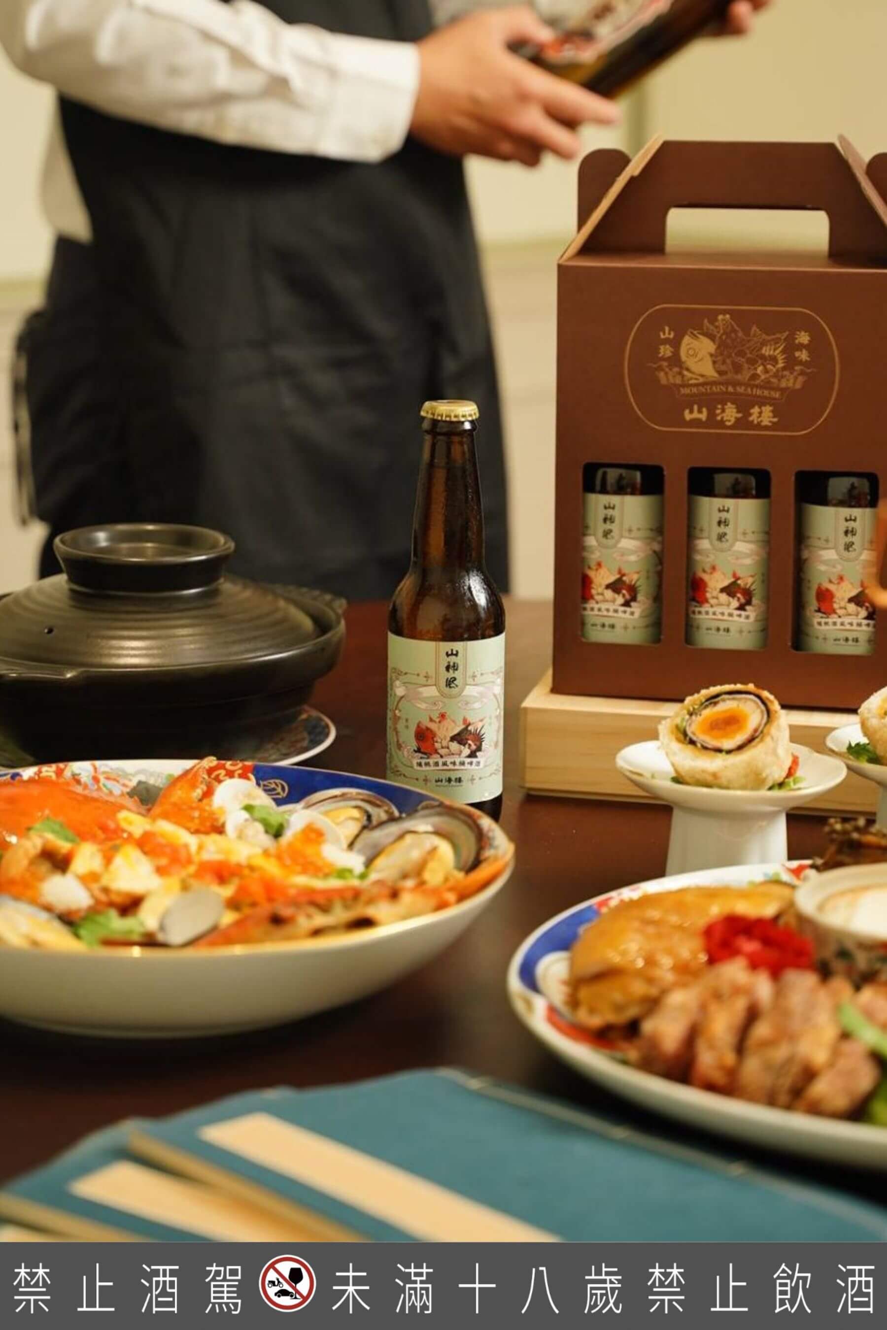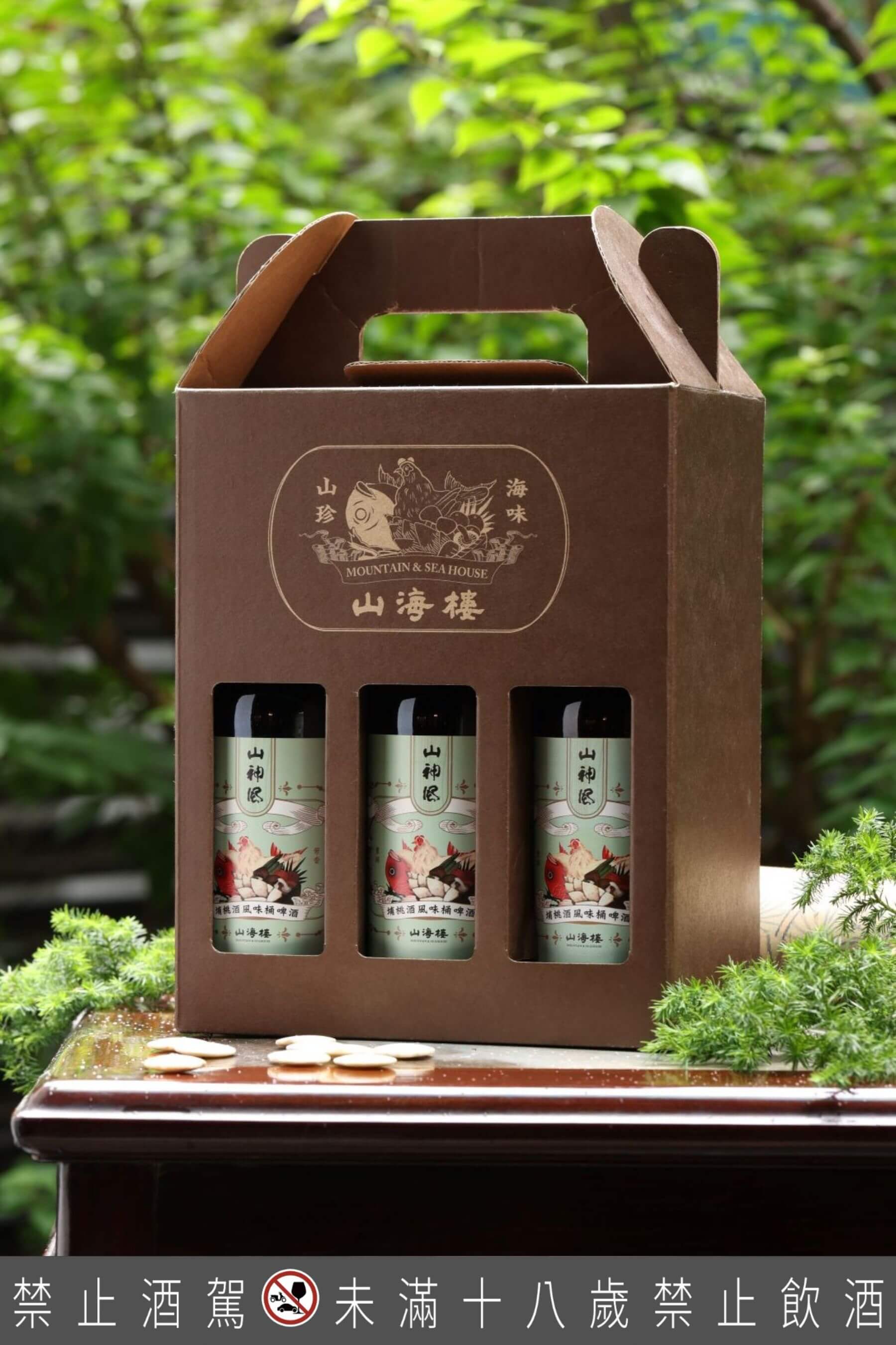 在2022年的尾聲,山海樓攜手國際大賽常勝軍「台風造酒」,在山海樓侍酒顧問何信緯Thomas的引薦之下,特別加入了帶領臺灣酒莊在國際間獲獎無數的高雄餐旅大學副教授陳千浩,三方聯手合作推出「山神風埔桃酒風味桶啤酒」限量1500瓶,每瓶售價新臺幣380元,僅在山海樓限定販售,獨特豐醇的滋味絕對滿足酒迷們的期待。