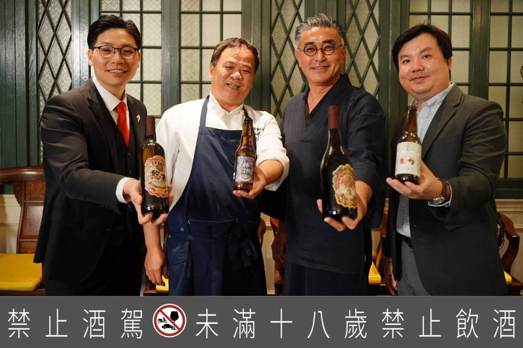 圖左至右分別為侍酒師何信緯、山海樓行政主廚蔡瑞郎、釀酒師陳千浩博士、台風造酒許承穎。