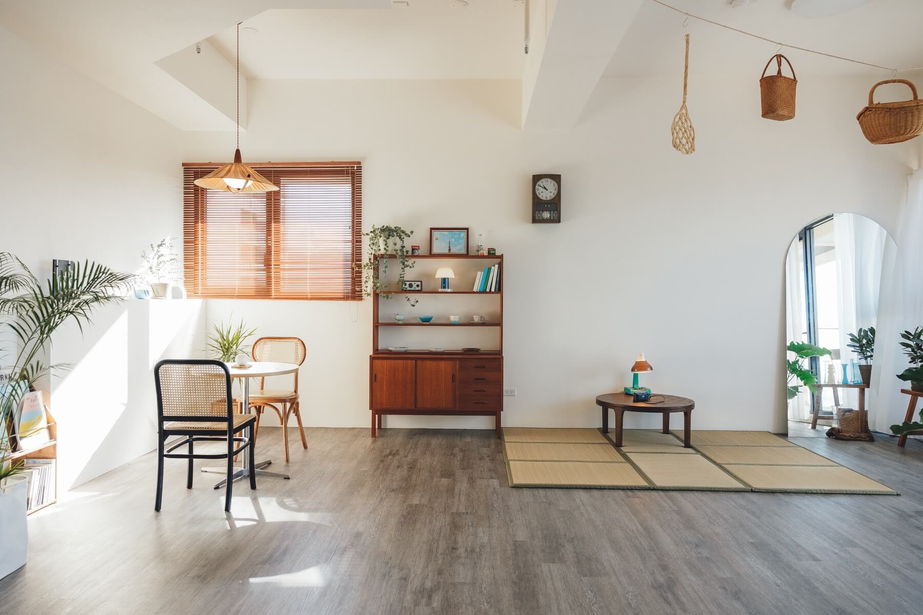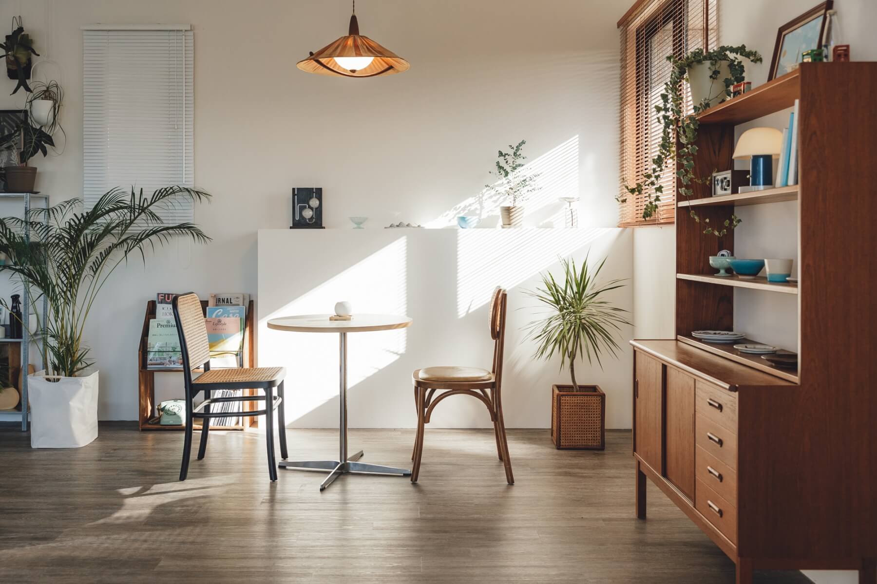 初訪青谷社,第一眼就讓人忍不住直呼「太美了」,乾淨的白牆、幾件北歐木製復古家具和點綴的植栽,連生活用品都精緻得可愛,空間中一點一滴都是目青親自規劃和選品,令人驚嘆的還有一大片落地窗和午後灑進的陽光,這也是目青一眼就愛上這裡的原因。「一開窗就是山和河濱,視野非常遼闊,心情也會很放鬆。」目青指了指下方的溪州河濱公園,那是他最常散步尋找靈感的場所,天空湛藍時,他會帶著相機拍風景、拍路人,「我最喜歡來到河濱散步的人臉上的表情。」