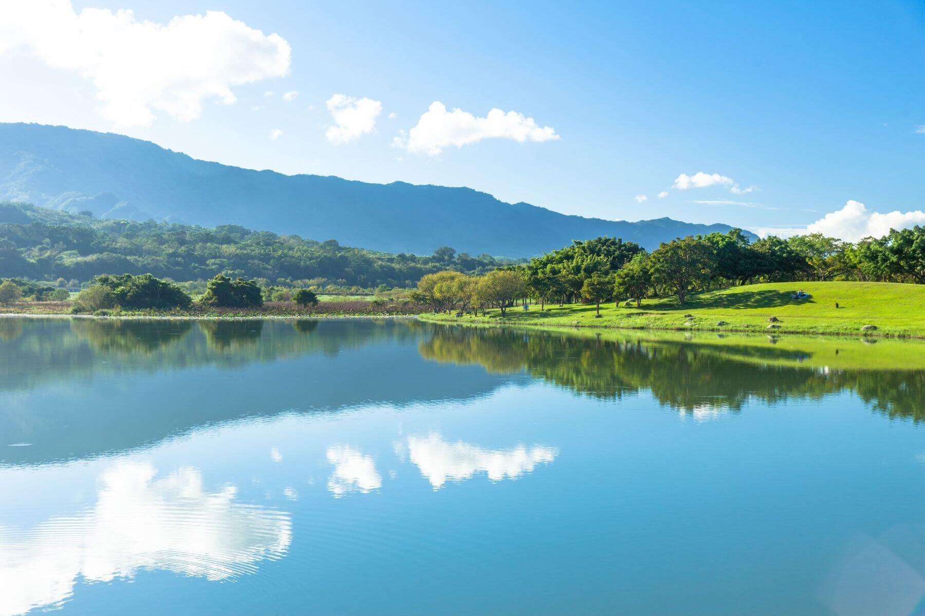 池上大波池一景。最初來到的阿美族稱它「fanaw」,族語中代表「池」,後來日治時期才轉寫成「大坡池」。