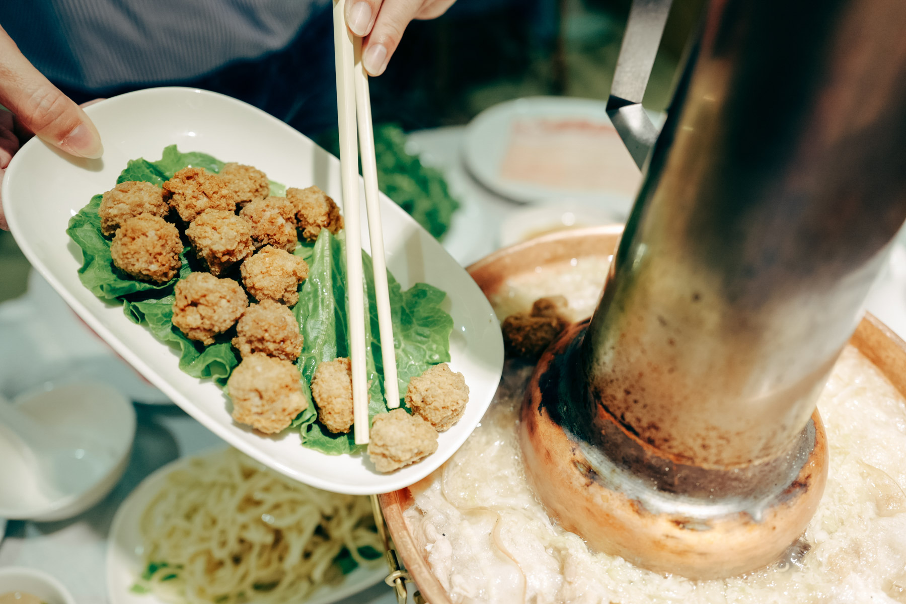圍爐的紫銅鍋、相思木炭,和中國東北幾分相像,這在南方另起的爐灶,卻處處是文化融合。酸菜,是台灣大白菜在經年吹送冷氣的中央廚房自然發酵28天而成;白肉,必須選台灣豬子排部位的五花肉,切除軟骨,重石壓去八成油脂,片薄後,晶白透光如玉;醬料,必須有芝麻醬、韭菜花、豆腐乳,醋要加烏醋,至於白醋、紅油、辣椒,楊尚寧不加,「那是台灣口味。」江浙點心、私房炒菜,則是因應夏天淡季而生的菜色。