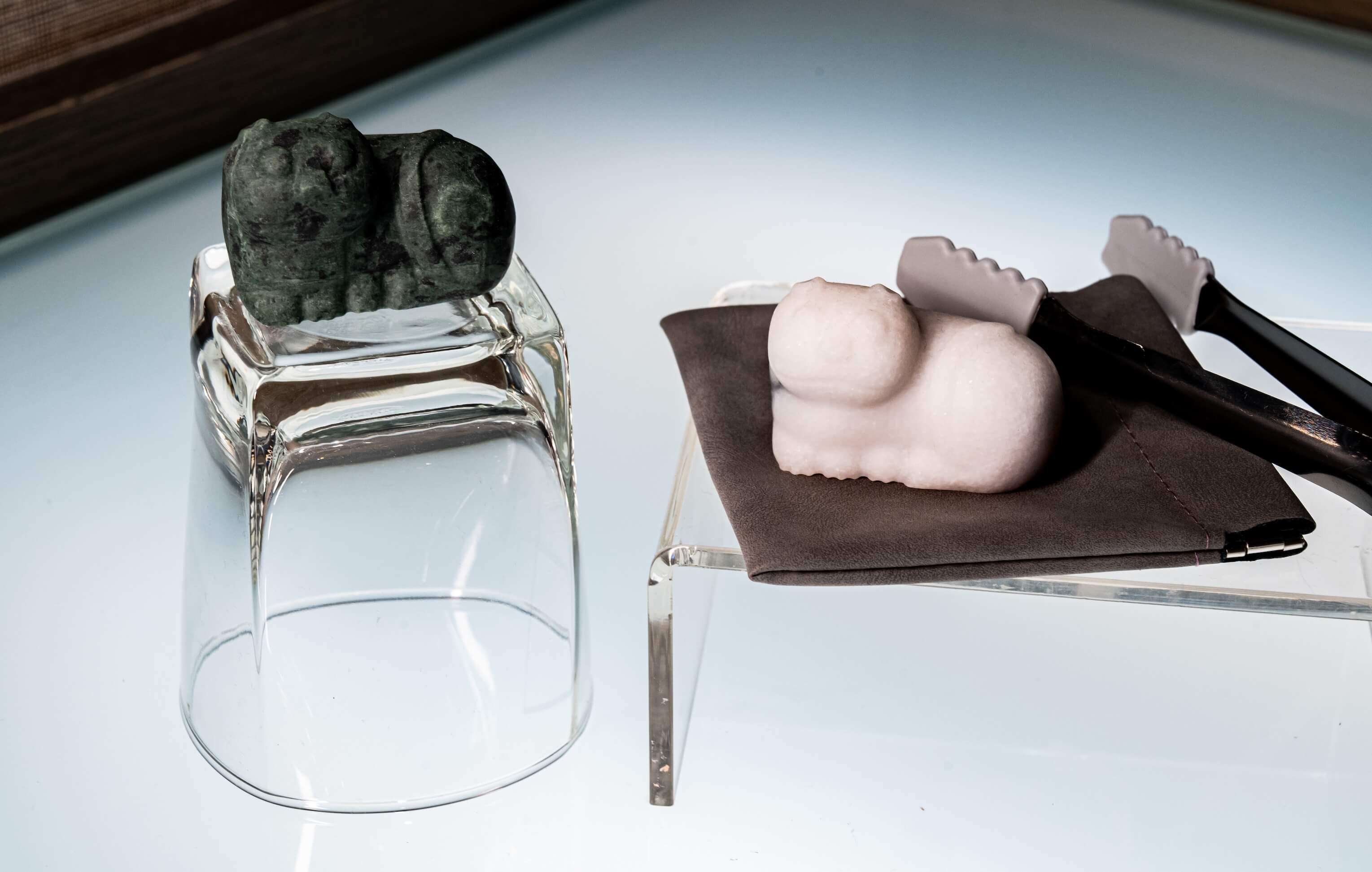 靈感來自故宮收藏的「墨玉貓」,這款造型冰石以高品質的天然大理石加工製成,放入冷凍庫4至6個小時冷藏後即可使用來冰鎮飲品,既不會稀釋飲品的風味,且可重複使用,環保又實用。