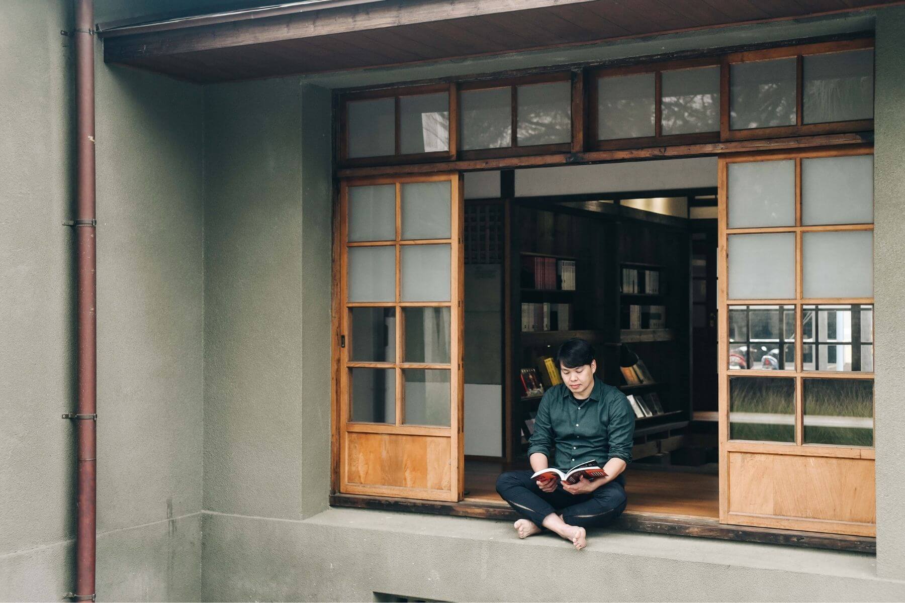 老房子事務所、民宿「謝宅」系列的創辦人謝文侃於書店的戶外閱讀區。