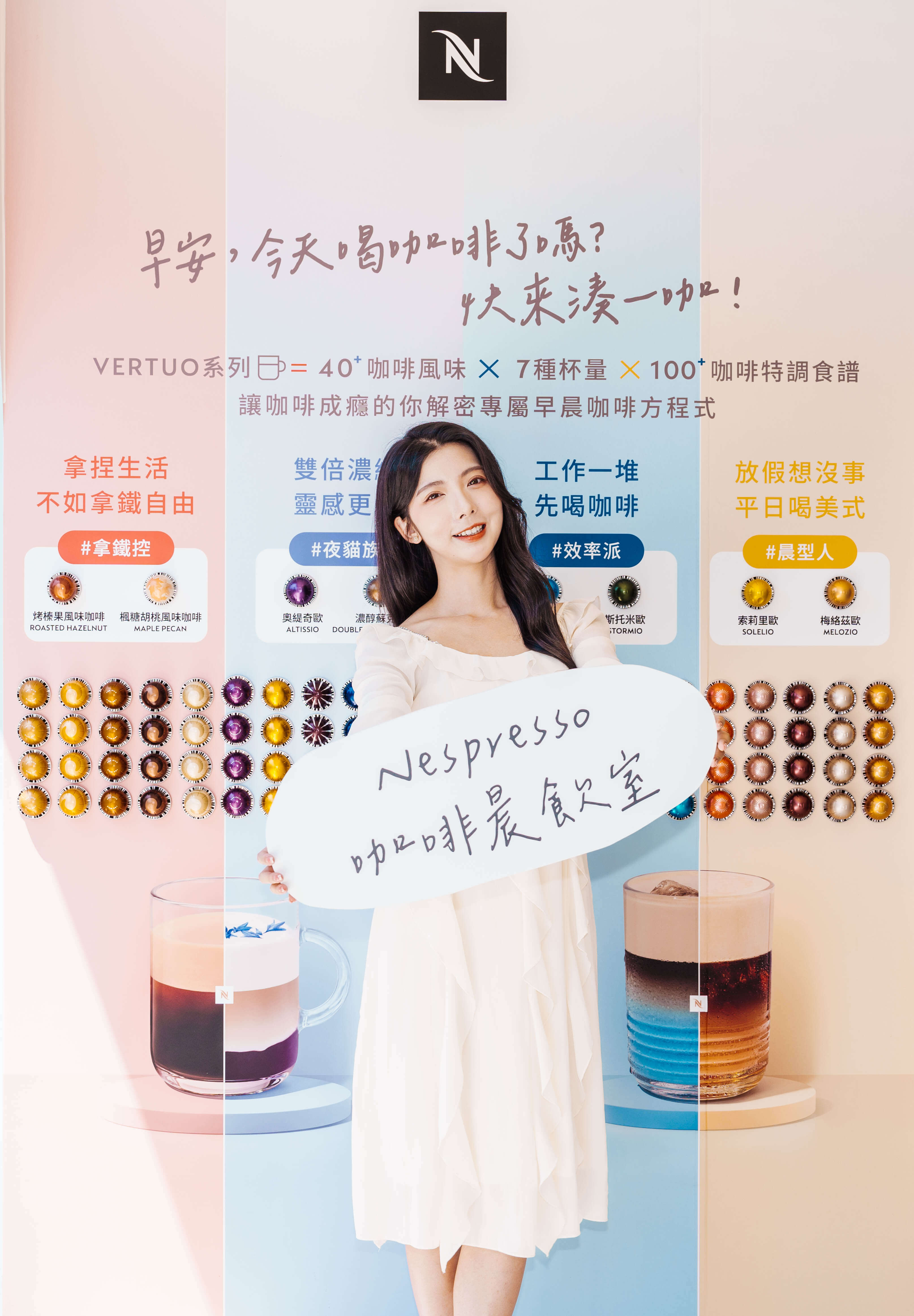 Nespresso台灣事業部總監張君妮Christine分享,有近7成的咖啡飲用時機發生在早晨時段,同時觀察越來越多消費者受過去疫情影響,養成在家沖煮咖啡的早晨儀式感。隨著消費者對咖啡的偏好與選擇越來越多元,Nespresso依據多年市場觀察與銷售大數據,發展出VERTUO系列,提供多元杯量與風味的選擇,來滿足「拿鐵控」、「晨型人」、「夜貓族」、「效率派」各種不同類型消費者的早晨咖啡需求。