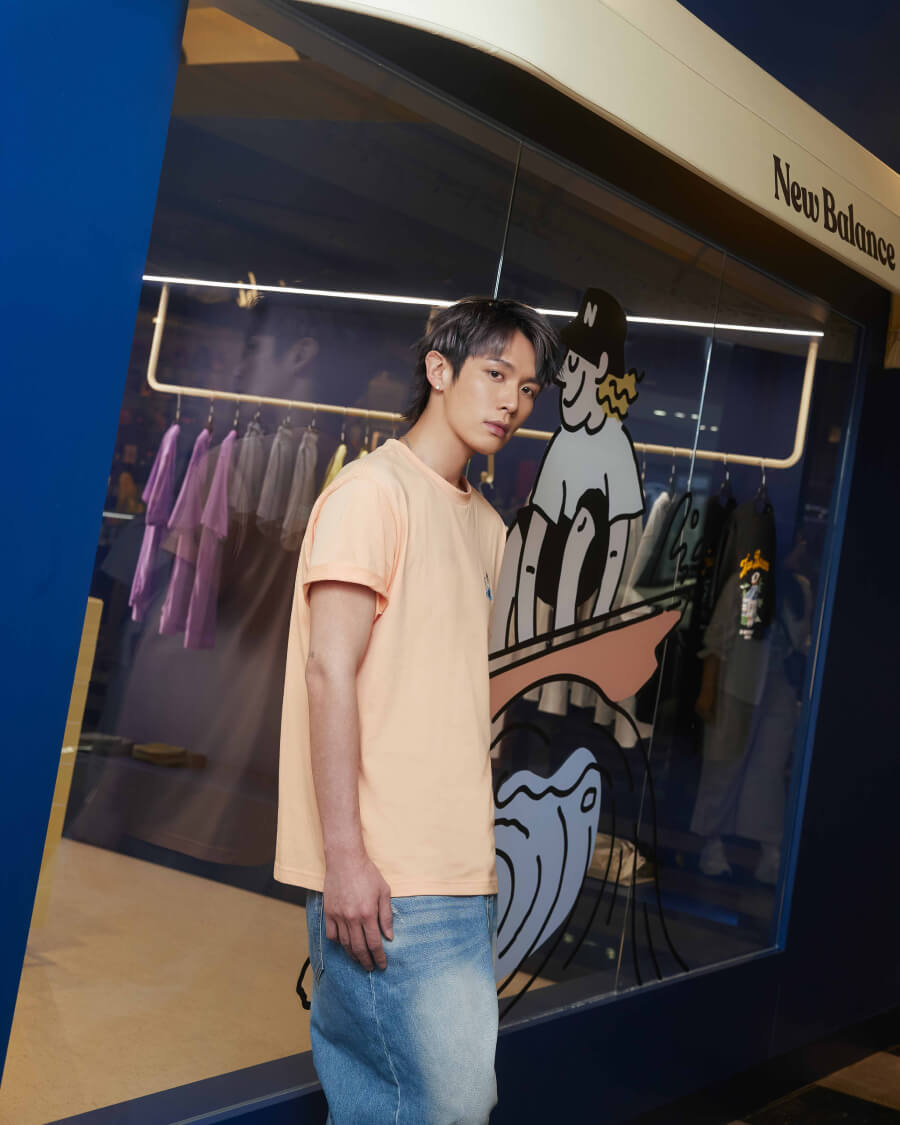演導雙棲男星柯震東穿上「SURFING」系列活力橘T恤,手拿衝浪板與椰子的NB BOY經典logo猶如自在漫步盛夏海邊;寬版復古牛仔褲搭上充滿未來感設計的海鹽色1000,突破日常風格的全新界線,展現街頭率性潮流:「NB BOY系列給人一種輕鬆自在的感覺,很適合日常穿搭,但又不會單調乏味。很適合穿著NB BOY系列的衣服,安排沿岸的旅遊行程,享受愜意的夏日午後。」近年,柯震東不斷挑戰自我,從演員身分延伸至導演領域,透過影像語言詮釋不同故事與情感:「我很喜歡充滿文化及人文特色的國家,可以看到很多以往不常見的事物,很容易會有意外驚喜。」