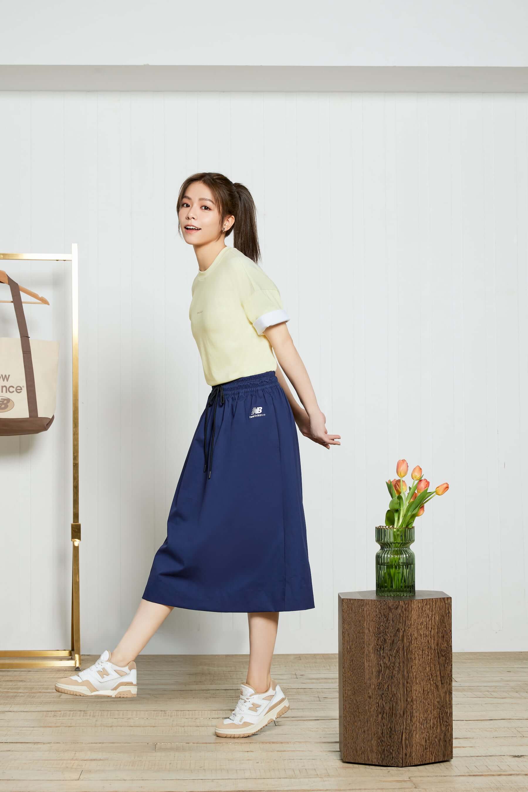宋芸樺則透過致敬美式街頭籃球文化之作、融合復刻美學與實用機能的復古球鞋——New Balance「550」,搭配同為NB ATHLETICS系列的休閒裙裝,展現既甜美又有個性的多樣面貌。