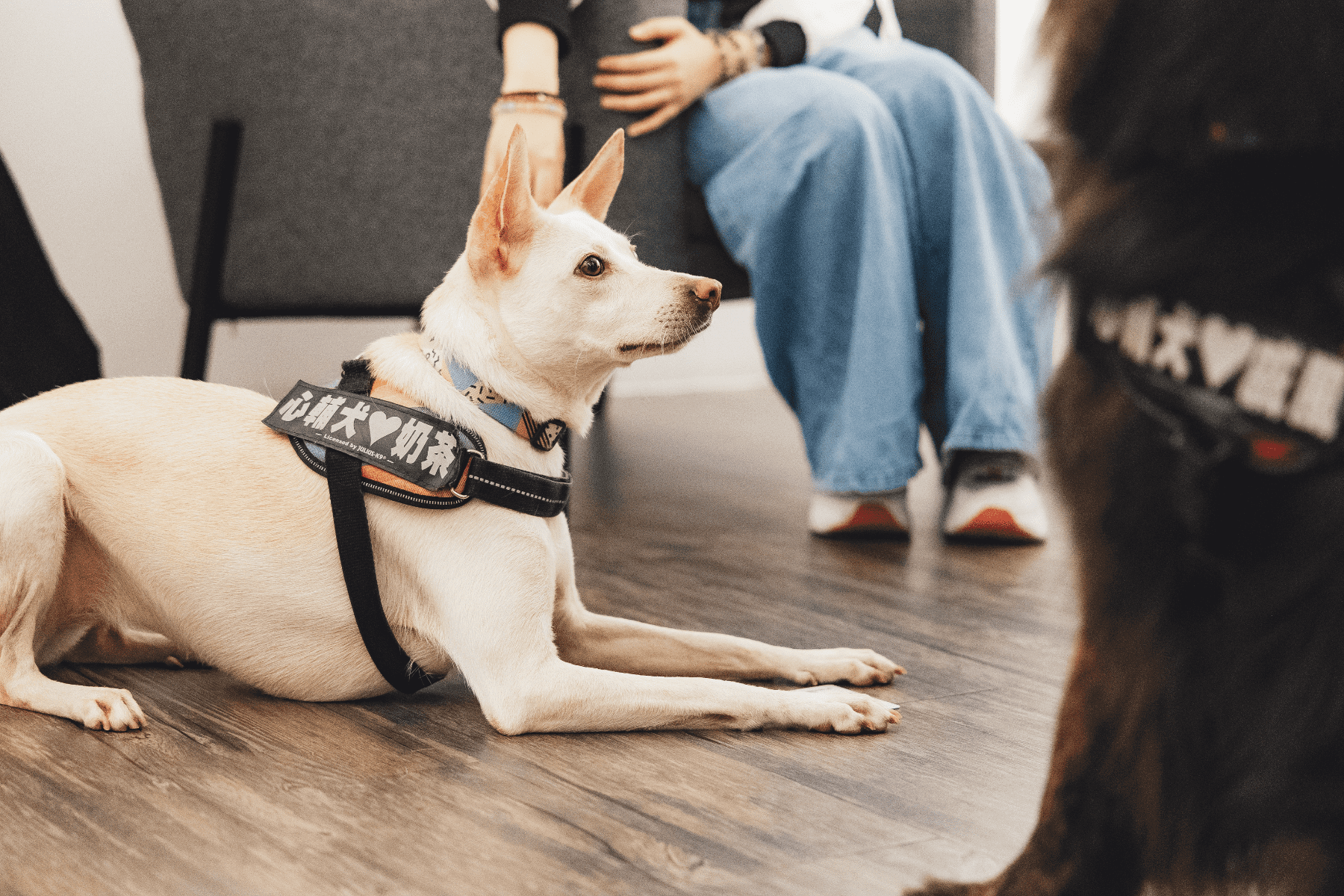 在創業之前,陳奕君其實曾面臨一段身心低潮。從小到大跟隨教育體制與社會期望走,終於決定要轉換跑道時,卻對未來方向陷入焦慮,最後也是狗狗們拉了她一把,「進入工作犬界那時候,我在心靈上真的獲得牠們很大的支持。」因為實際感受過帶來的力量,創立心輔犬的念頭也就更加清晰。