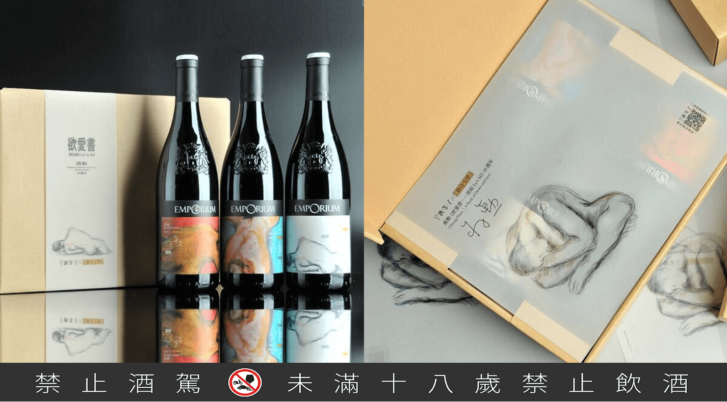 本次延伸《欲愛書》再版所策劃的人體油畫素描展,從入口的小小酒席陳列《欲愛書》的三款聯名葡萄酒,以蔣勳畫作作為酒標呈現,讀者可以收藏來自義大利的醇酒,同時欣賞狂而不妄的人體描繪。