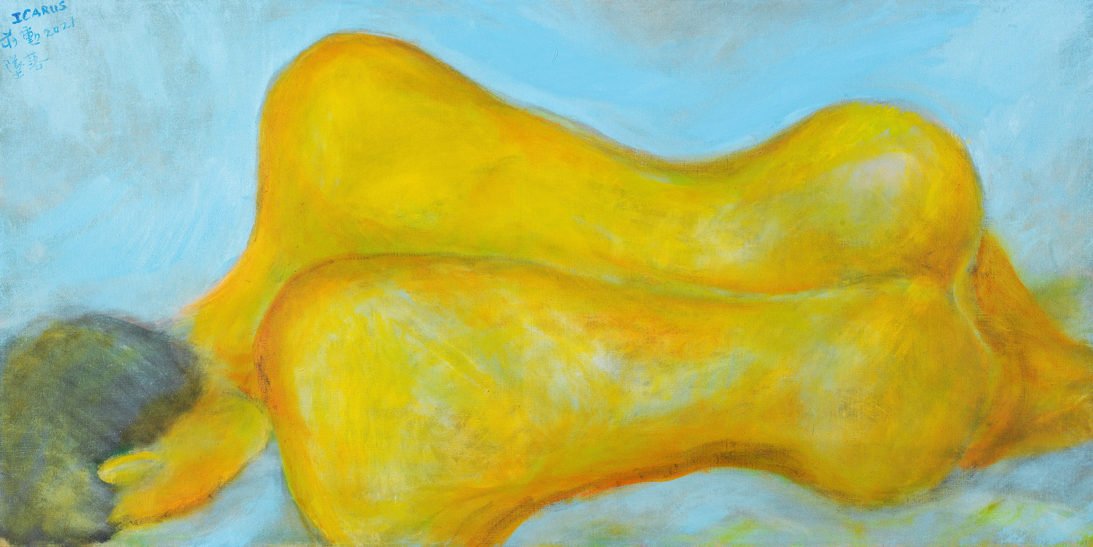 蔣勳,《Icarus的墜落》,2021,油彩畫布, 50×100cm。
