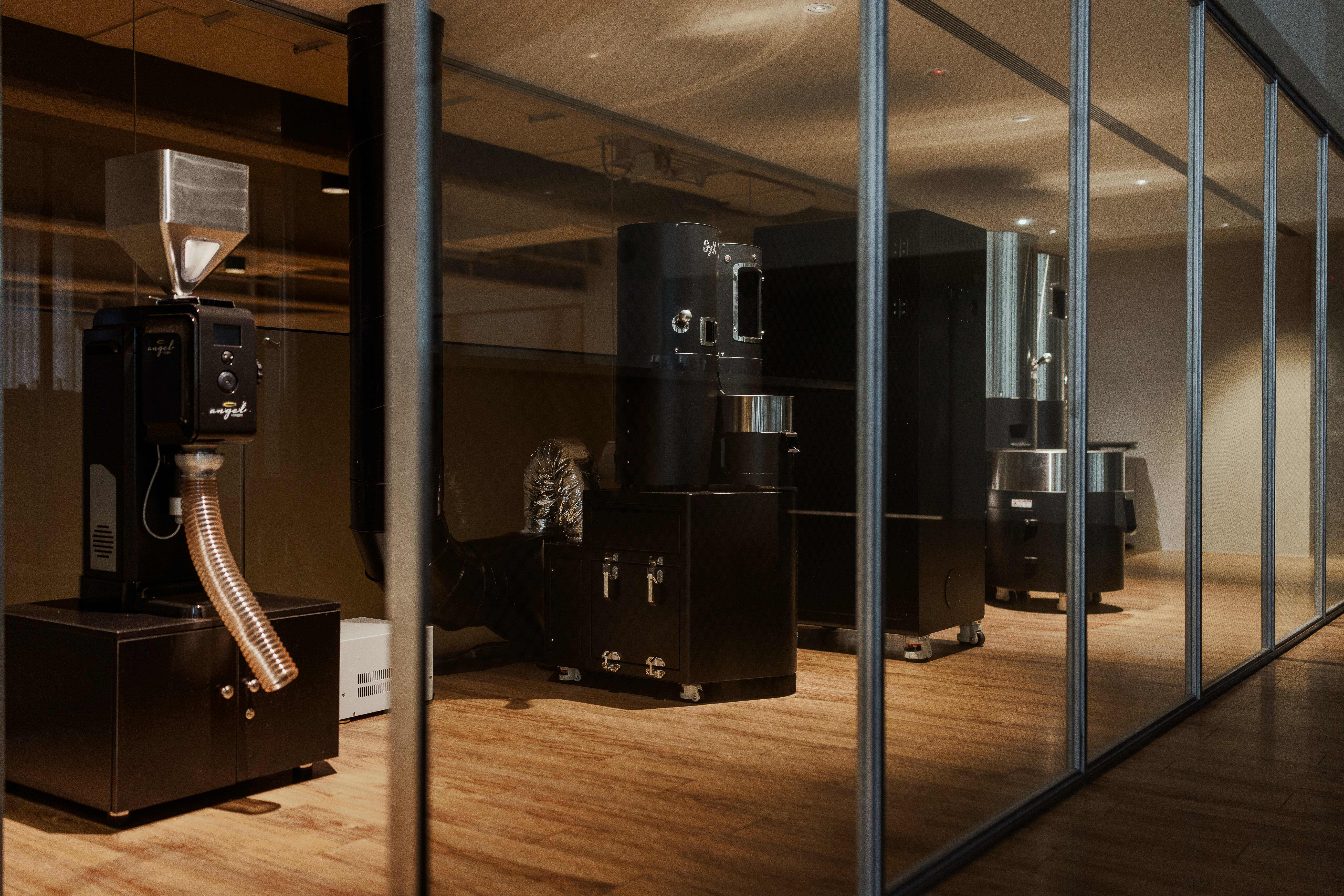 作為零售總部,精心打造的「NP Atelier」是Ninety Plus全球唯一認證的生產中心。遠渡重洋來到台灣的生豆,在控溫、控溼的精準環境裡妥善安置,而落地玻璃窗後如精品櫥窗般陳列的烘製機具,是精選WCRC世界烘豆賽指定品牌的旗艦機種,由於其精準的烘焙控制,更能將複雜咖啡風味呈現清晰度與一致性,確保每一顆咖啡豆都是最高規格品質保證。