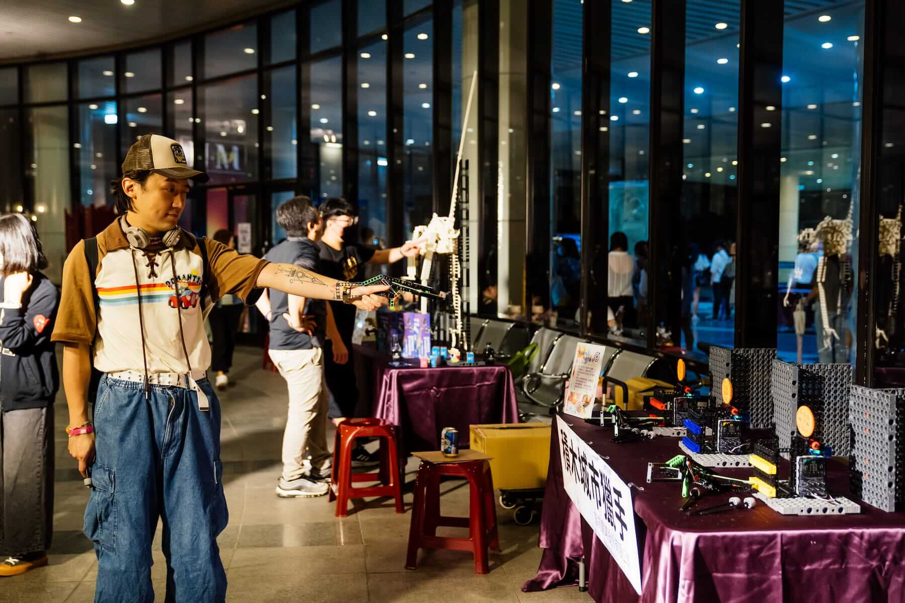 即便當日天公不作美,下起了連綿細雨,依然澆熄不了觀眾的熱情,橢圓形廣場上的樂團現場演出以及各式餐飲與手作攤位,如大藝術家油蠟畫、積木十字弓射標靶,仍舊滿滿體驗人潮。
