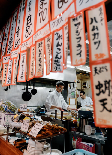 當你啜飲著滿溢出來的清酒,接收週遭的聲音、香氣和味道,你會意識到居酒屋不僅僅是個場所——而是一種生活體驗,一種傳統,印證了日本飲食文化的豐富多樣性。儘管共享著相同的文化,各地居酒屋也變化無窮,各自有其獨特的當地料理。京都市中心,雖然四處瀰漫著莊嚴的歷史氣息,但居酒屋卻為這座城市帶來溫暖,敞開雙臂歡迎所有人,保證帶給你一個難忘的夜晚。