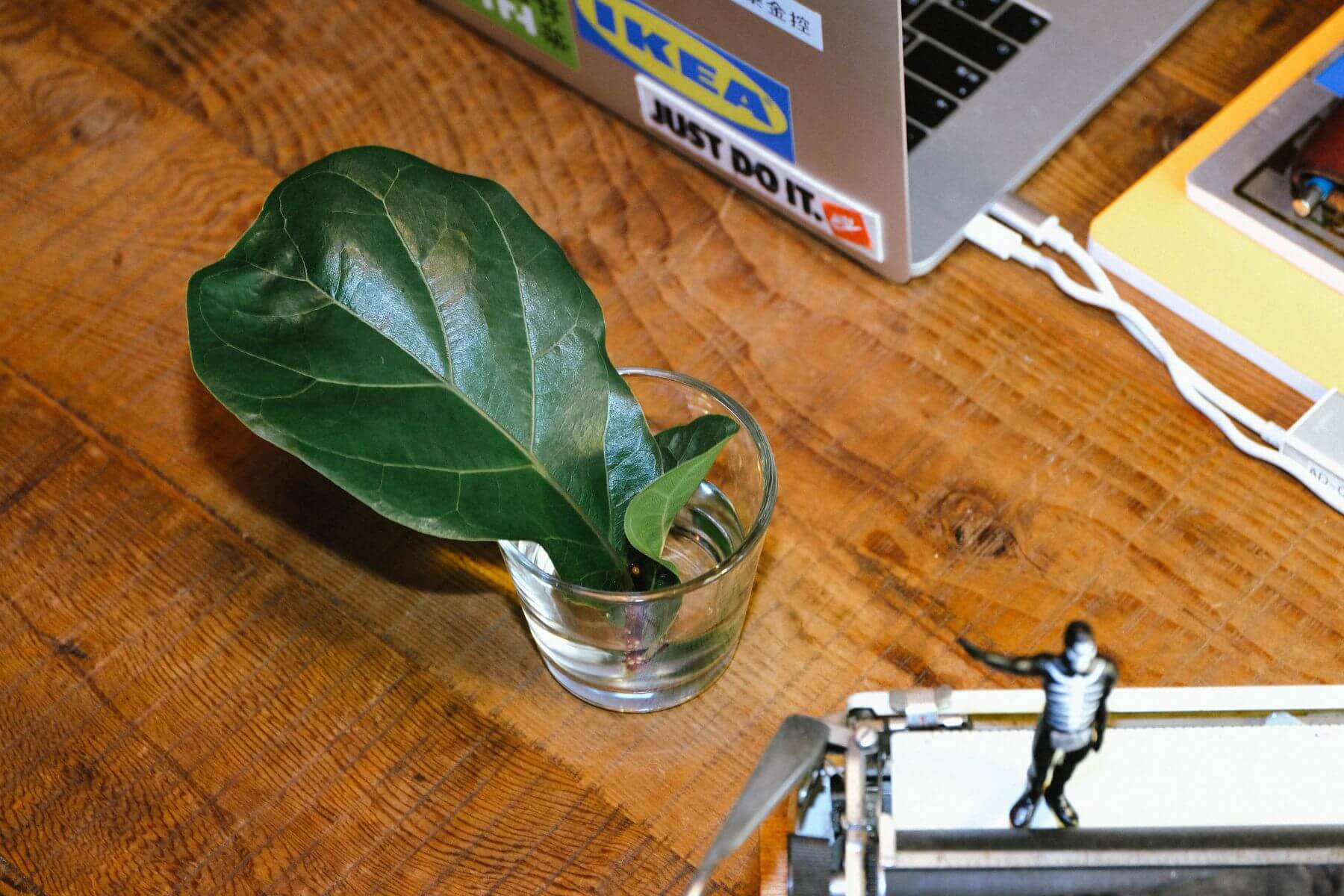 我很喜歡琴葉榕。我本來是植物白癡,種什麼死什麼,後來發現琴葉榕其實很好種。它是半日照,只要一星期澆一次水就會長得滿好。它會一直長高,長高的時候要給它剪枝,我把剪下的葉子插在玻璃容器裡,久了之後它會冒出根,可以再種回土裡去。