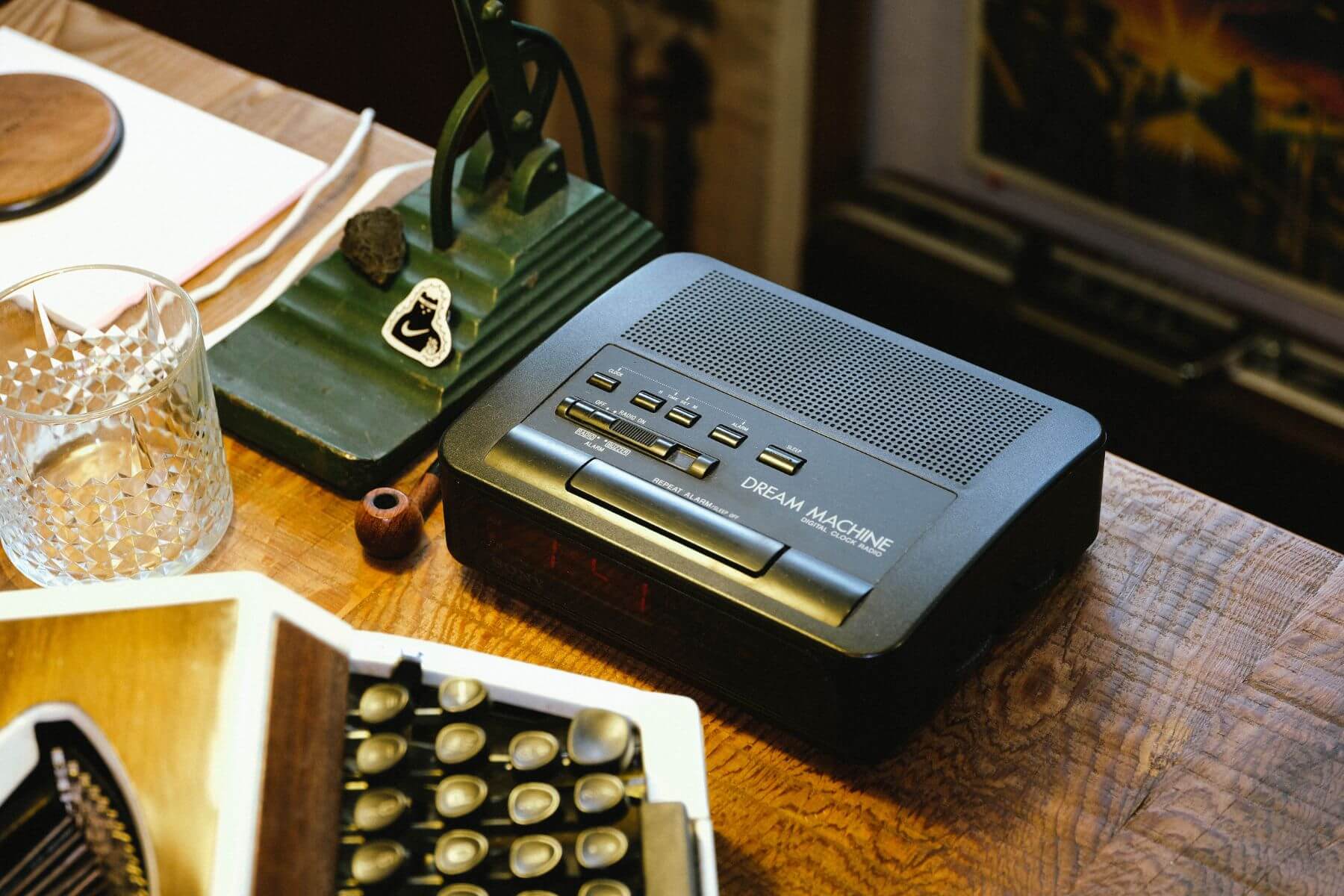 那台是SONY的收音機鬧鐘。在90年代,不知道為什麼他們敢叫自己叫「Dream Machine」,我覺得很有趣,好像是一台可以帶來夢想、產出夢想的機器。雖然功能正常,我現在也不會拿它來聽廣播,只是一個時鐘和「Dream Machine」這樣——我桌上有一台創造夢想的機器,這種感覺啦!