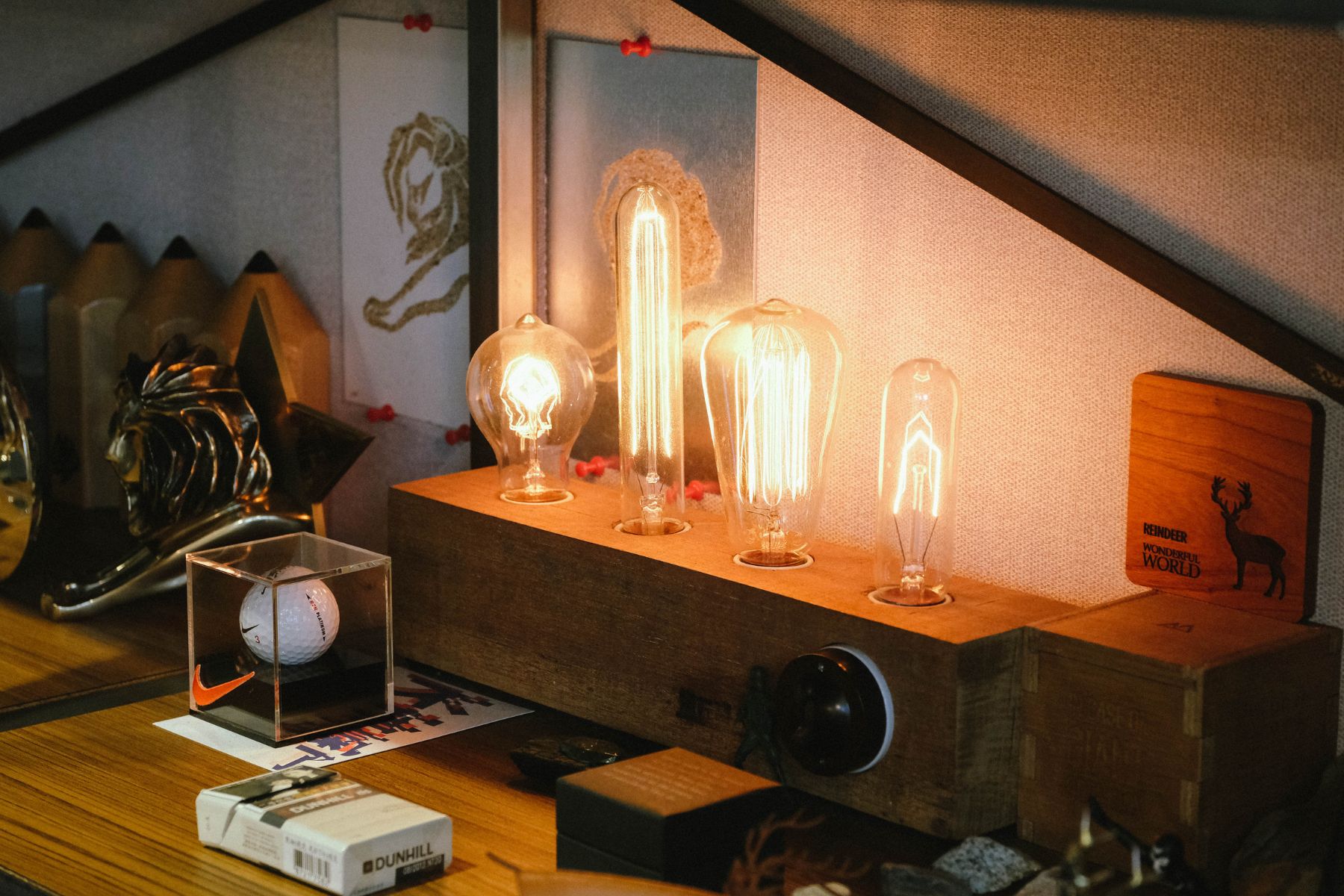 每天我來辦公室的第一件事就是把這個燈泡打開,代表上工了。辦公室亮著不代表我在,這個創意燈泡有亮才代表我在。