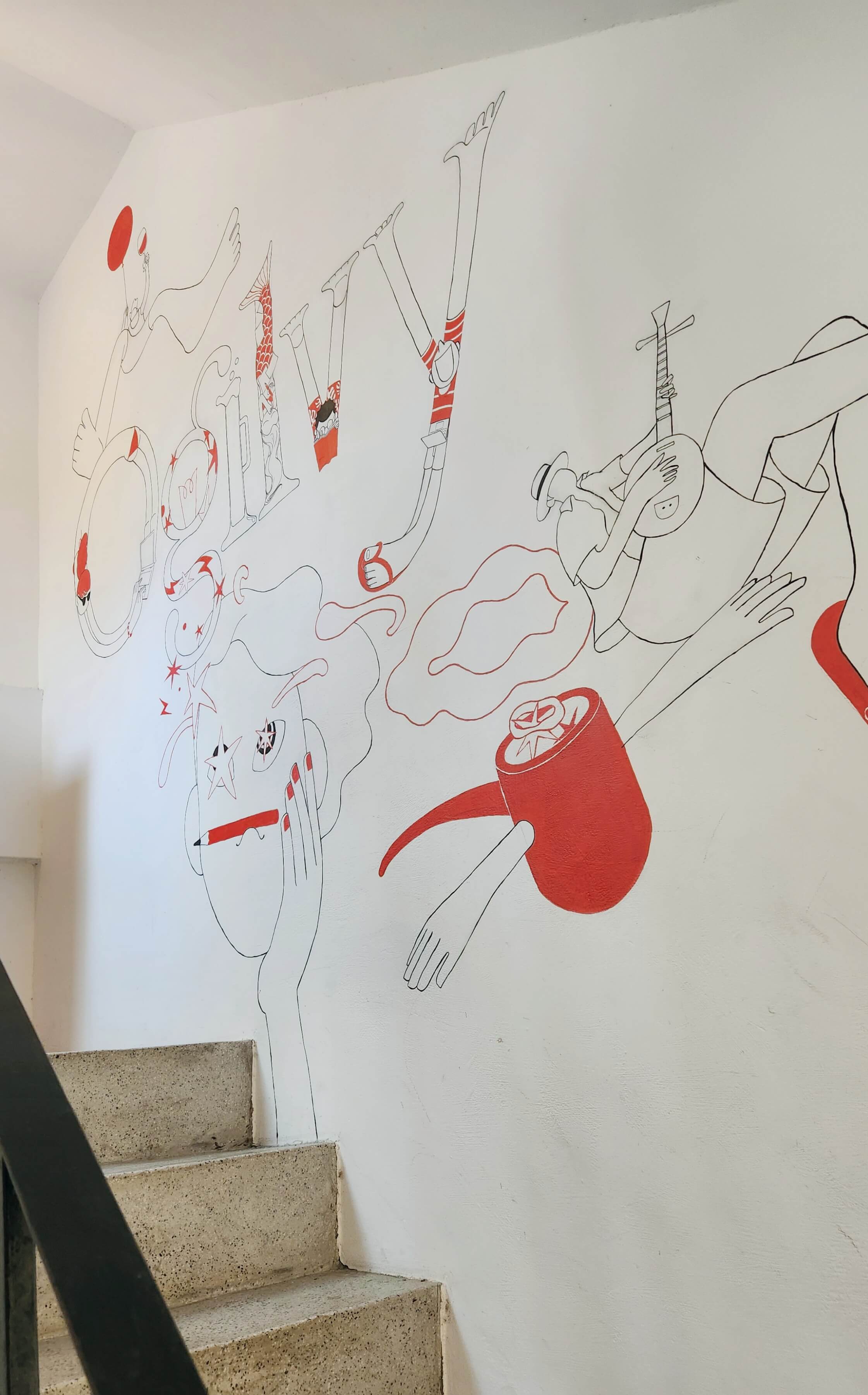 奧美集團執行創意總監謝陳欣,在樓梯牆上畫出奧美精神。
