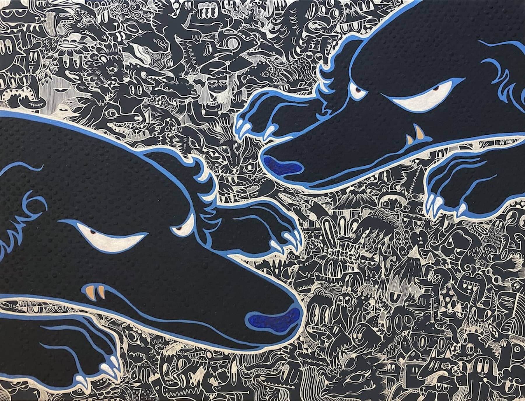 日帝藝術_王昱翔_《如果你想說,我會聽》_原子筆、金箔、銀箔、銅箔、黑箔、赤貝箔、紙本_78x110 cm_2023