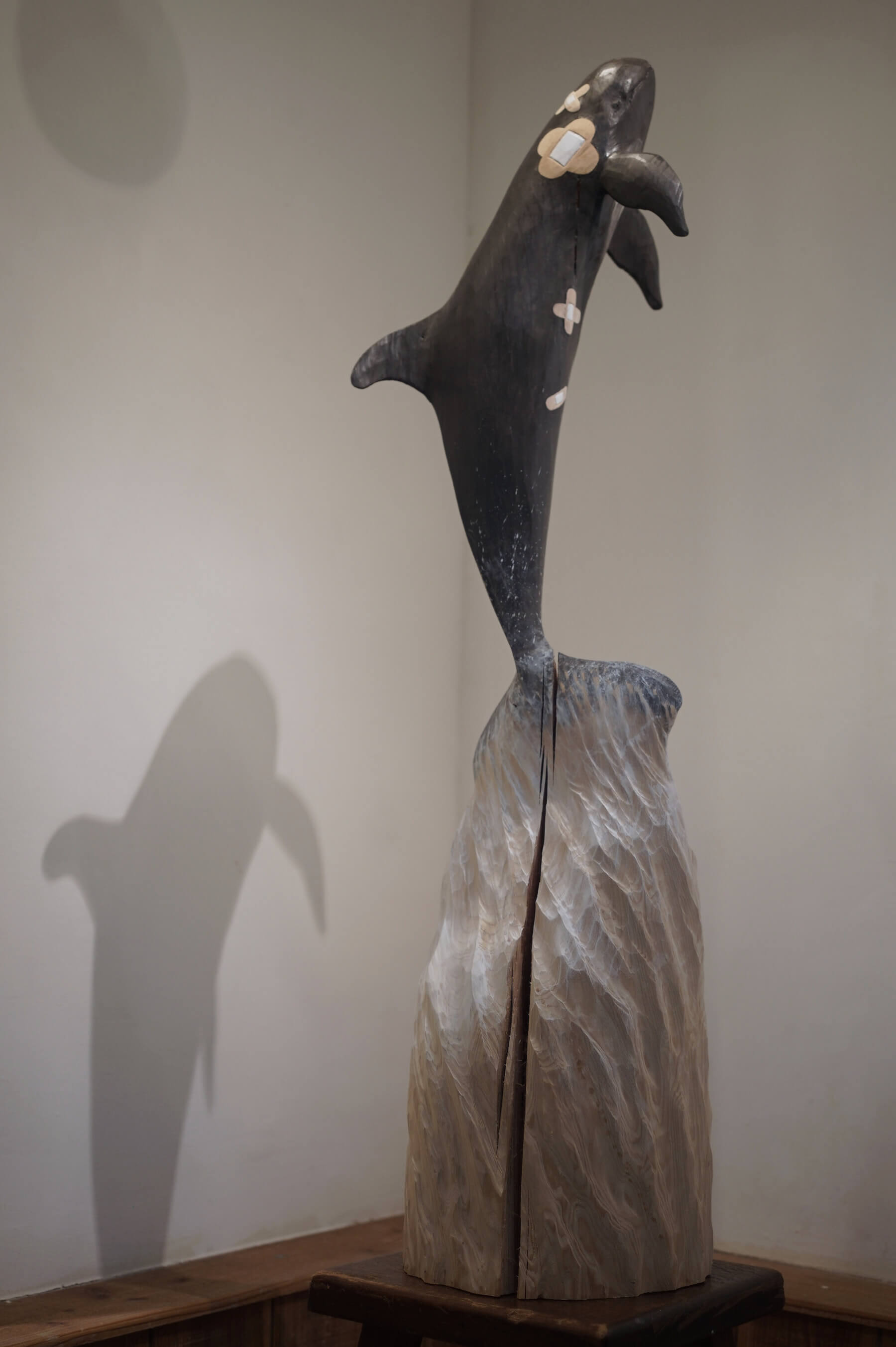 「澍林」帶來張意的雕塑作品《Be OK》,靈感來自藝術家於2021年前往蘇澳參與的一次鯨豚的擱淺救援行動。他選擇一塊帶有巨大裂痕的木材製作偽虎鯨,並使用硬木製作OK繃形狀的榫修補偽虎鯨身上的裂痕,不僅表達對海洋動物處境的關懷、人類活動涉及動物生命的擔憂,亦是對動保議題實踐者的致敬。他盼望,無論海中或是陸上的生命,都能Be OK。
