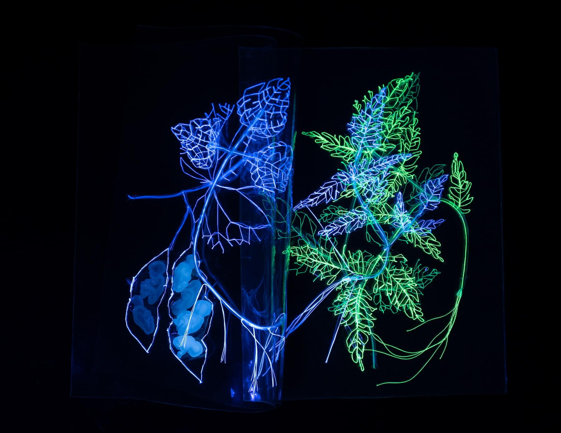 安卓藝術_安德利亞・梅達爾 Andreea Medar_《永恆花園裡的植物標本集 》_手工刺繡、壓克力、透明塑料、塑膠管、樹脂_30x40 cm_2022