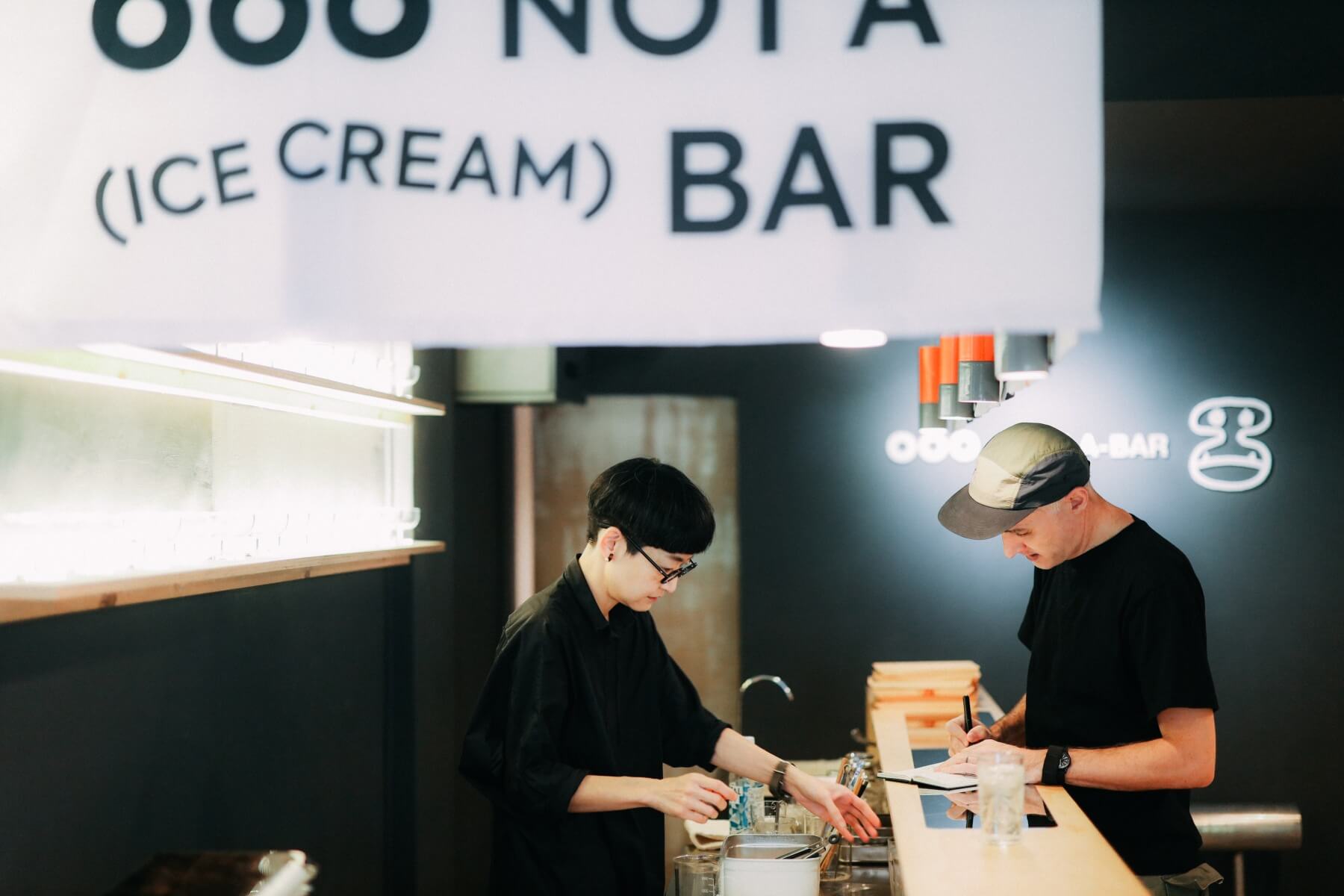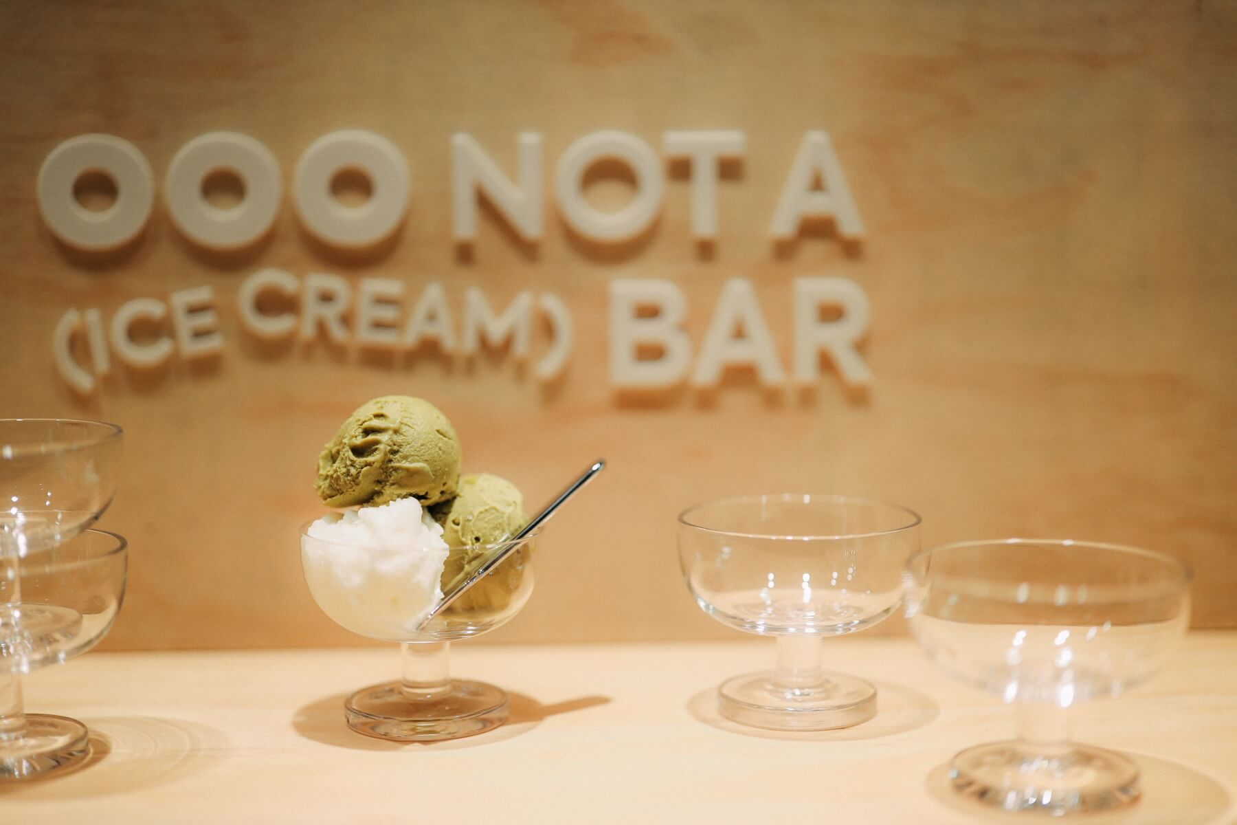 任性但認真,理解到這邊,不難想像他們近期新發表的「OOO冰淇淋匙」和「OOO冰淇淋碗」,應該就是出自喜歡吃冰淇淋吧?「沒錯,因為我們兩個都喜歡吃冰淇淋啊!」他們笑著回應。尤其在歐洲長大的Nicol,從小到大的夏日假期裡,每個拿著小湯匙,一小口、一小口挖冰淇淋的時刻,都在記憶裡留下幸福的痕跡,「對於這件讓人愉悅的事,我們想透過專門為此而生的物件賦予儀式感。設計的時候,我一樣盡可能讓它們外觀看起來熟悉又簡單,並且想像使用的人會抱著什麼情緒。我希望他們的心情是有一點慎重,但不用小心翼翼,所以將湯匙用不鏽鋼來做,表面還經過精緻拋光,碗的部分則以厚實的口吹玻璃一體成型製成。」整個十月,OOO NOT-A-BAR都改名為「OOO NOT A (ICE CREAM) BAR」,找來甜品、酒吧以及火鍋品牌在週末進駐,打造超乎大家想像的器皿體驗,為冰淇淋匙和冰淇淋碗的故事添入各種驚喜。