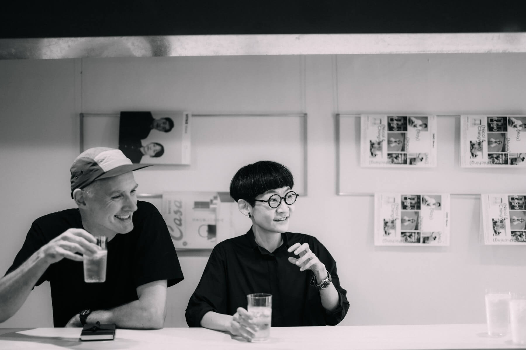 踏上綠樹與老屋相映的青田街,一座步登公寓的一樓外牆掛著「OOO」字樣的白色燈箱,探身走進後,見到像工作室、又像藝廊、又好像酒吧的空間,這裡便是OOO最常在實體世界與大家相會的場域「OOO NOT-A-BAR」。「我們一直相信,產品要被使用才有生命。所以我們做了這個不定期開放的空間,透過不同主題活動包圍著產品出現。」OOO的兩位發起人陳靖雯與Nicol Boyd並肩坐在吧台椅上,一邊喝著玻璃杯中的氣泡飲,一邊如在酒吧閒聊般向我們分享。