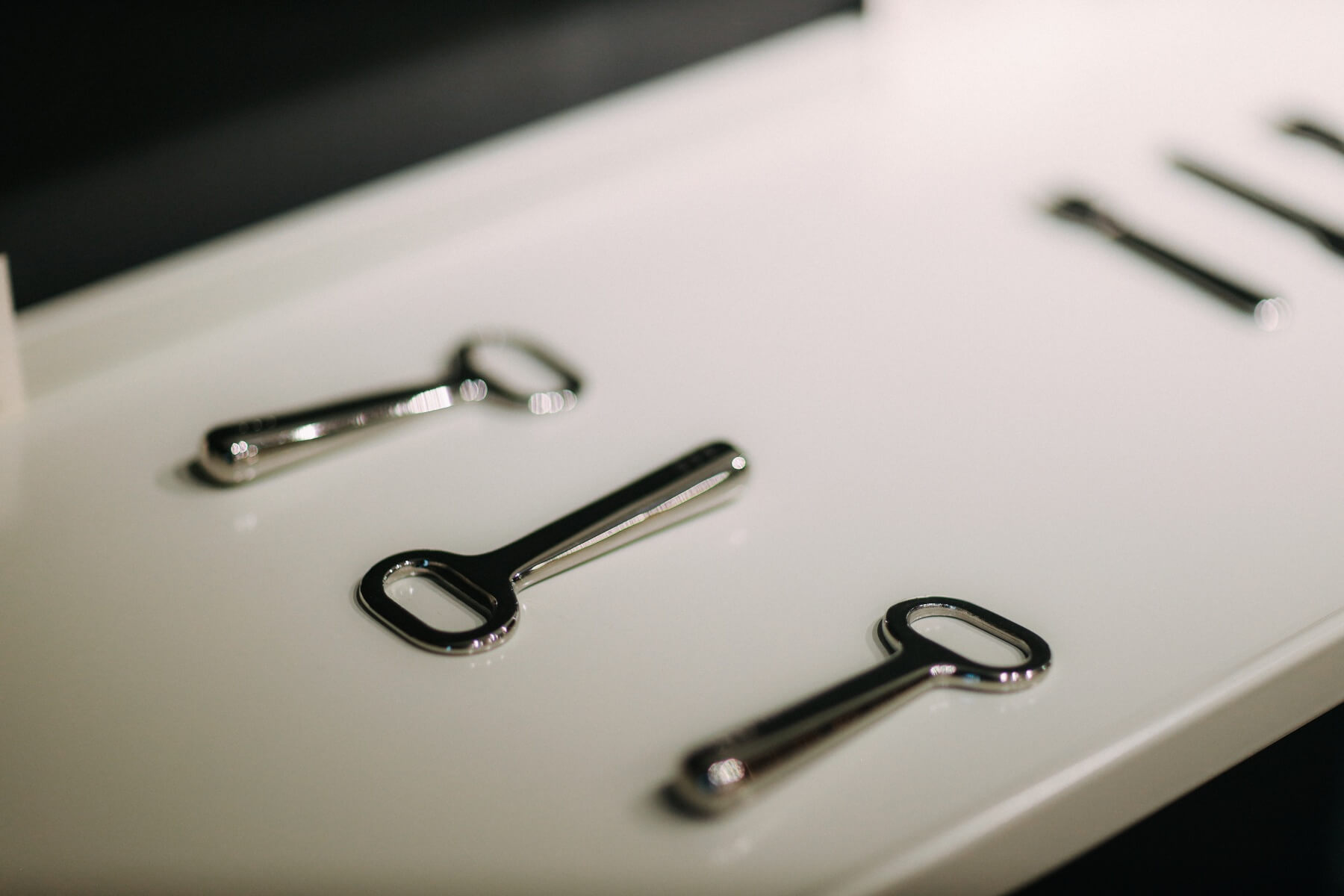 2020年,他們將開瓶器的誕生做得轟轟烈烈。「OOO開瓶器」有著大手小手使用都順手的完美槓桿尺寸,材質是食品級不鏽鋼,握起來份量十足,外型還做成摸不出角度的流線弧面,再經技藝純熟的師傅手工拋光,讓表層如鏡面般反射日常光影。這樣一件在製作工時與成本都偏離常軌,普通卻充滿出色細節的產品,就是OOO想帶給大家的火花。