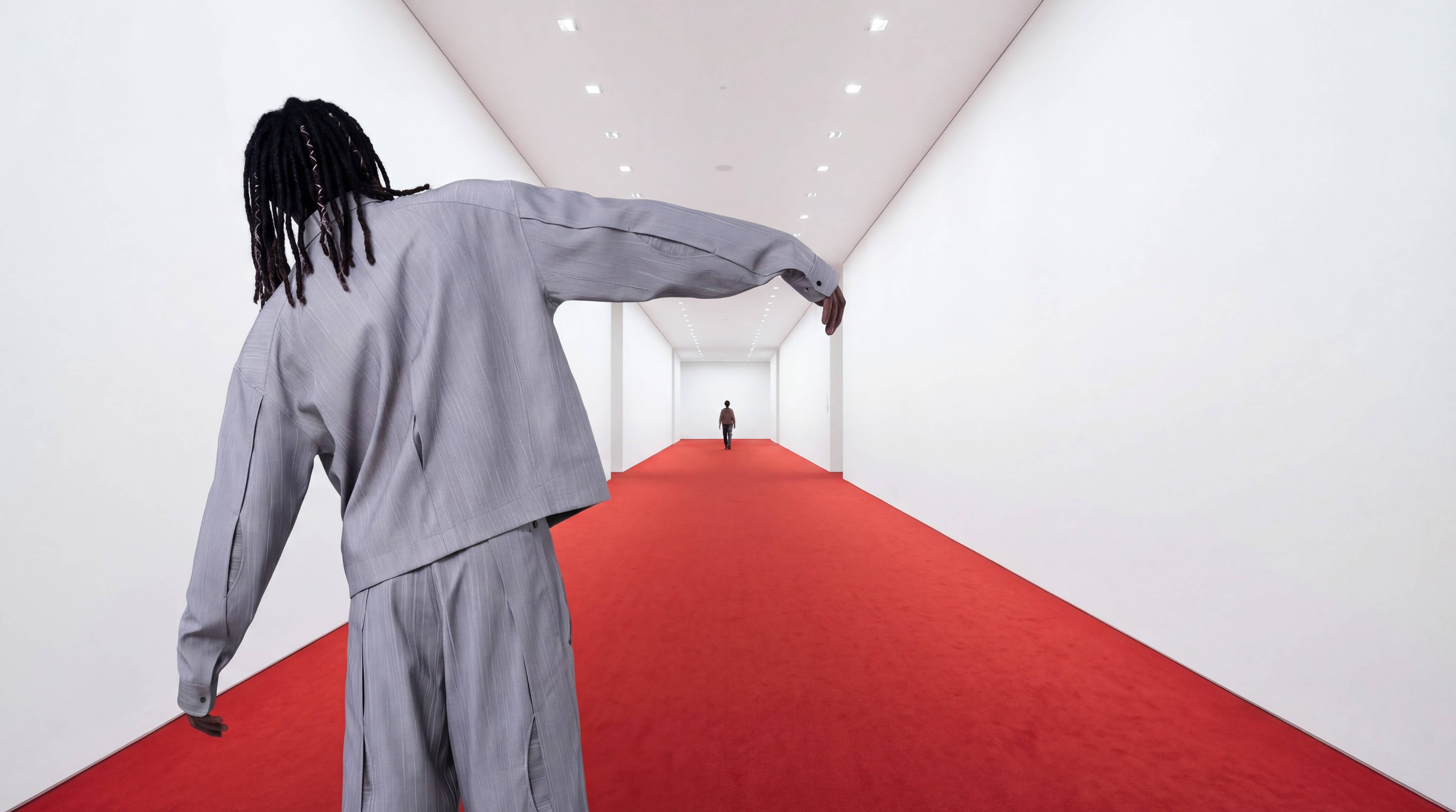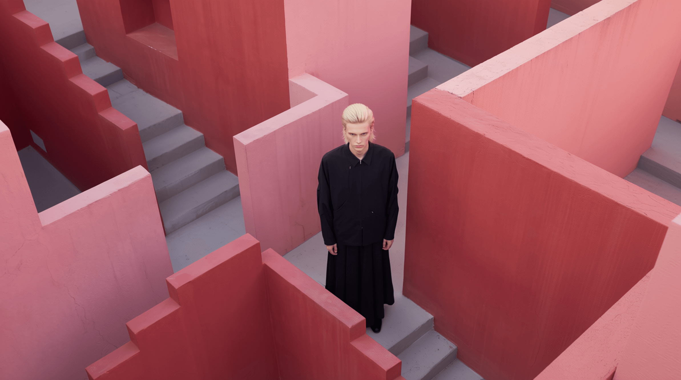 此次發表以虛擬 presentation 形式展開,不再依賴伸展台的線性敘事,而是一段被剪接、拼貼與重構的空間序列。在超現實主義的視覺邏輯與電影蒙太奇語法之下,透視被拆解,比例被改寫,尺度在斷裂與重組之間游移。 當空間不再穩定,身體成為唯一的穩定核心。模特穿梭於被組裝的場景之中,有時重複、有時遮蔽、有時懸置於不同建築層次之間,但服裝的結構始終清晰。這種視覺語法讓觀看本身成為一種主動的建構行為,觀眾不再是被動接收訊息的角色,而是在斷裂與重組的畫面中,自行拼湊出對服裝與空間關係的理解。