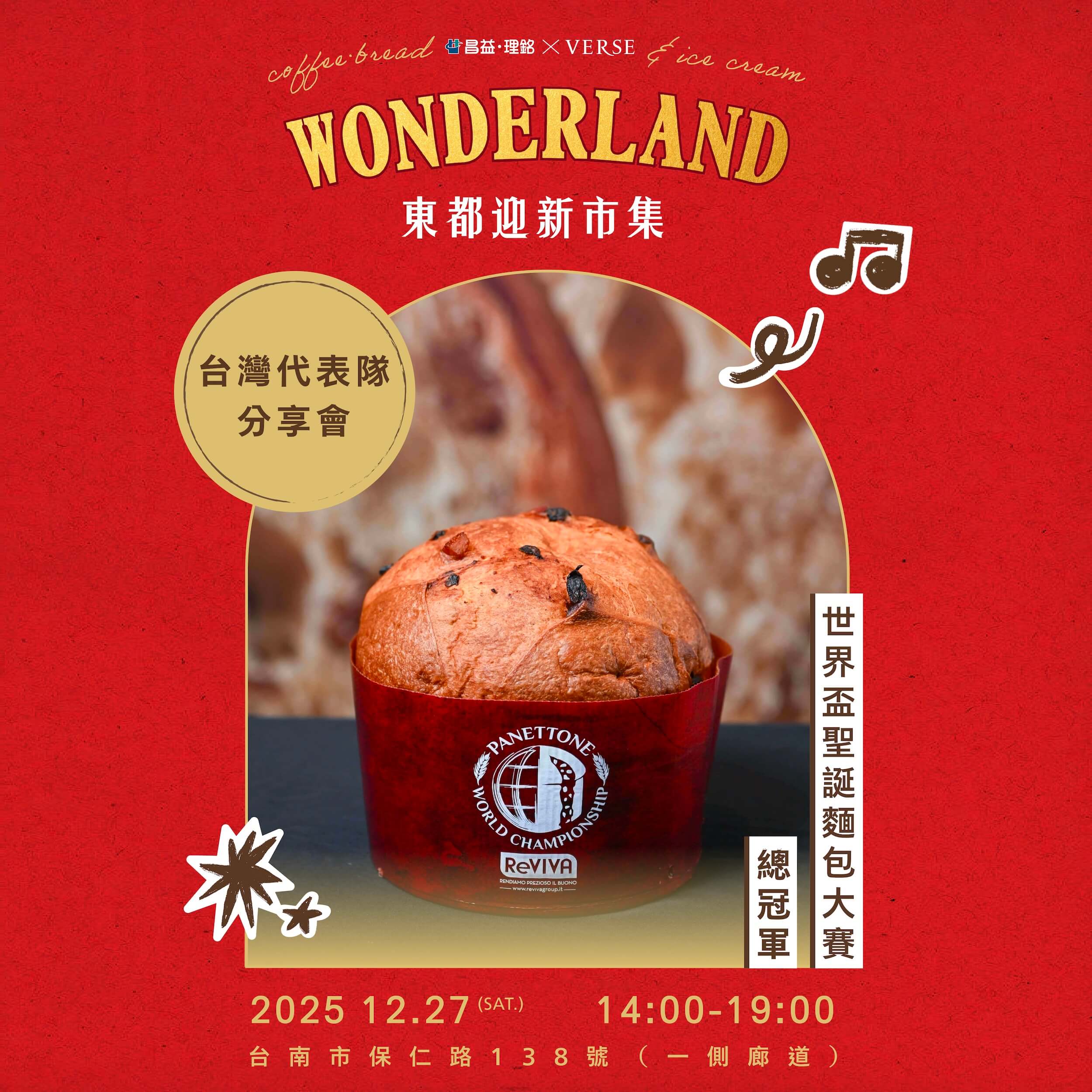 今年12月27日在台南「Wonderland東都迎新市集」現場,有機會嚐到這款台灣隊改寫歷史的金牌麵包,三位師傅將親臨現場分享參賽的心路歷程,機會難得,千萬不要錯過!