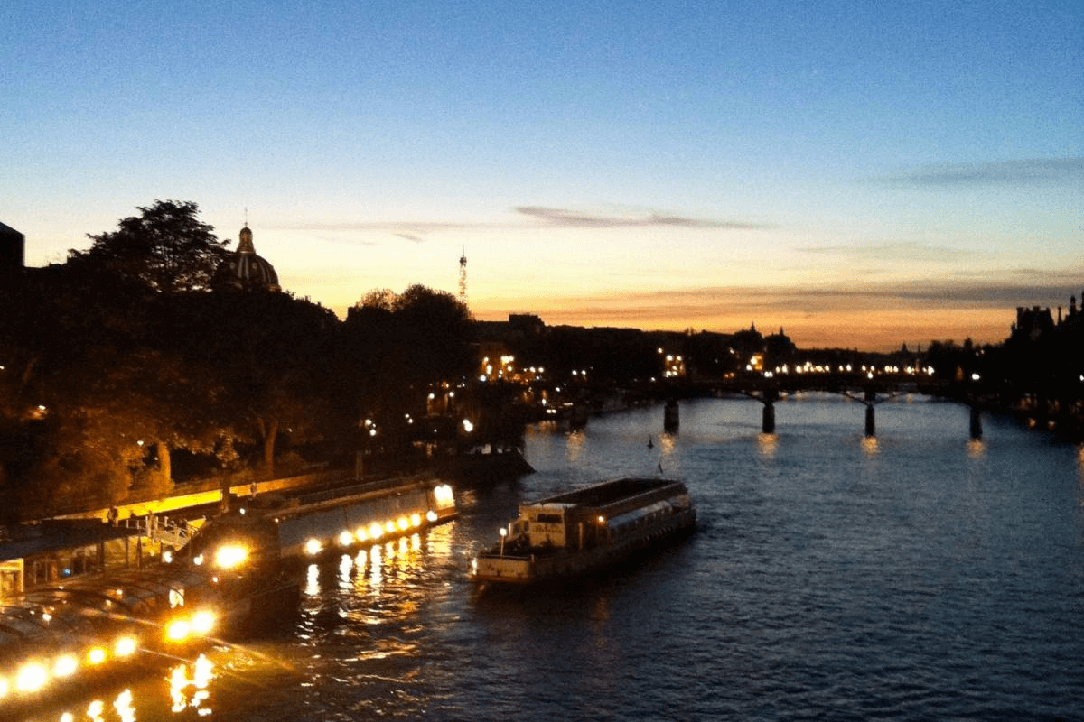 在冬季,巴黎的日出時間最晚需等到上午8點多,才能看見太陽完全升起,清晨時分走出船屋,將身軀緊縮在皮草長大衣中抵禦寒風的我,潛伏於依舊漆黑的夜色中,在奧斯曼風格(Haussmannien)建築建構的完美天際線盡頭,隱約可見微微暈、揉合青色與粉橘的一線天光,空曠街道上,已經出現的身著螢光綠背心的清掃人員了。
