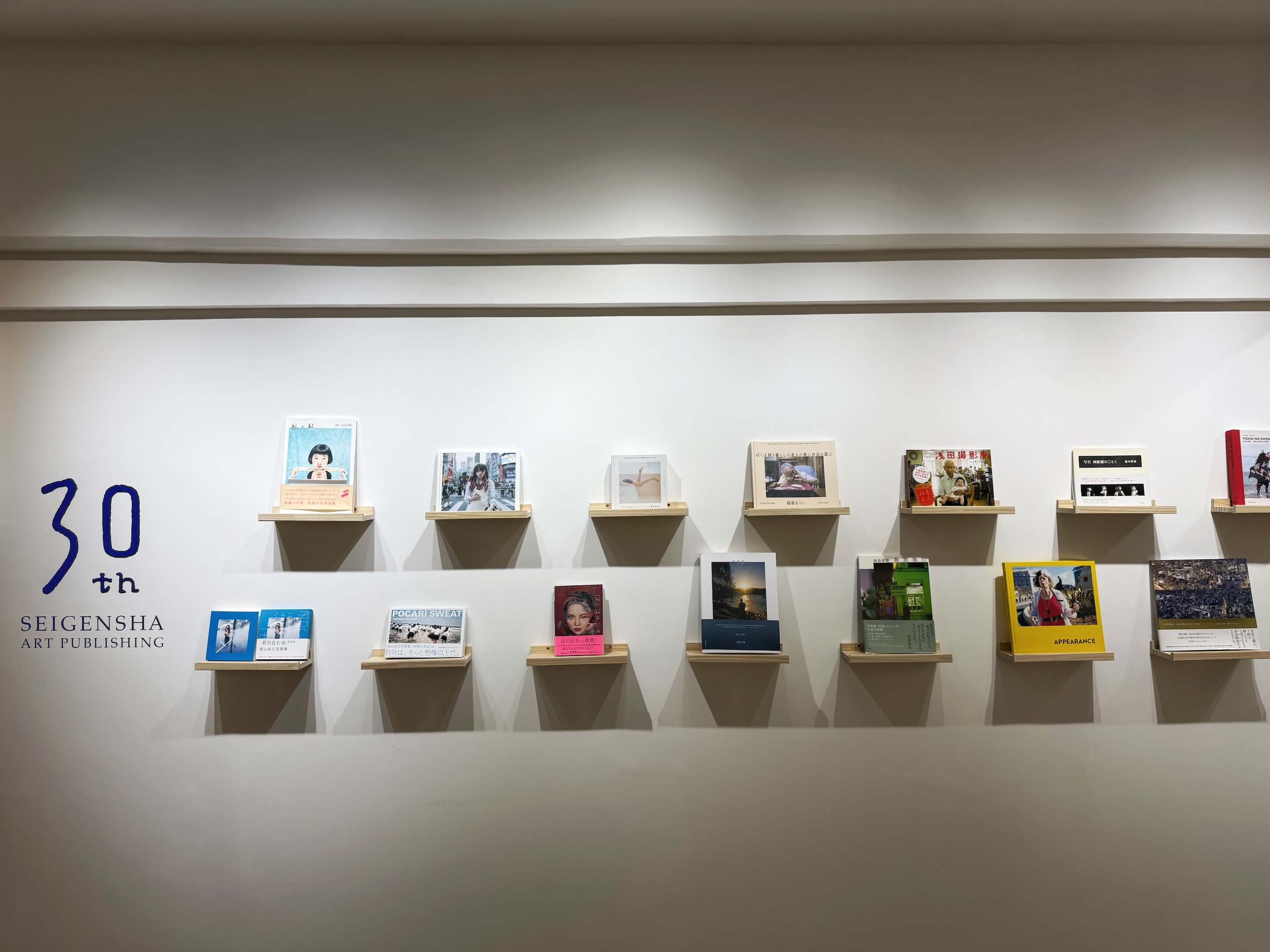 走進顯影堂,最引人注目的是牆上那三十本整齊排列的攝影書。這是劉東佩為青幻舎三十週年特別策劃的展示,每本書上都貼著放大的出版社logo。「我希望讓大家開始認識攝影書的出版社」,他解釋這個設計的用意,「因為多數人只記得攝影師的名字,卻忽略了出版社在出版過程中所扮演的重要角色。」