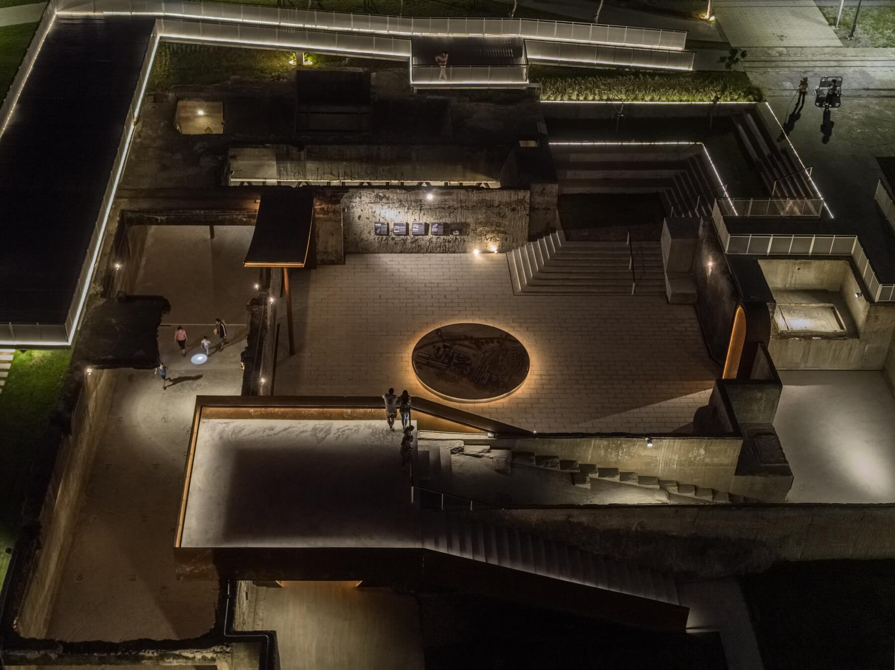 潘孟安縣長指出,縣民公園的第一期工程在2018年完工,曾作為2019台灣設計展「超級南」主展區;第二期則以殺蛇溪為主軸,串聯附近的公共設施、藍帶與綠帶周邊環境,打造為融合在地古今特色的城市桃花源。「然而,正當我們覺得一切都在掌握中時,意外的挑戰就出現了。」他回憶,工程團隊為解決土壤鹼化問題、如火如荼進行地表下的換土作業之際,竟挖出了舊紙漿廠的備料地坑,和五個用以處理廢污水的圓形沉澱池,使得工程進度瞬間嘎然而止。「究竟該掩土塵封,抑或正視處理?」潘孟安縣長在心中思量了千百回,最終意識到,讓民眾重返歷史現場的機會如此可遇不可求,於是拍板決定留下這座獨特的製紙漿工業遺構。可說是獨特的機運,促成了縣民公園的獨特樣貌。