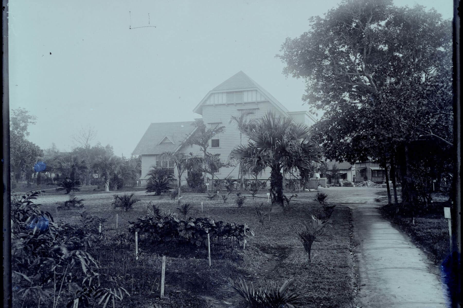 日治時期,台北植物園內公務建築及前方草坪。(圖/林業試驗所標本館提供)