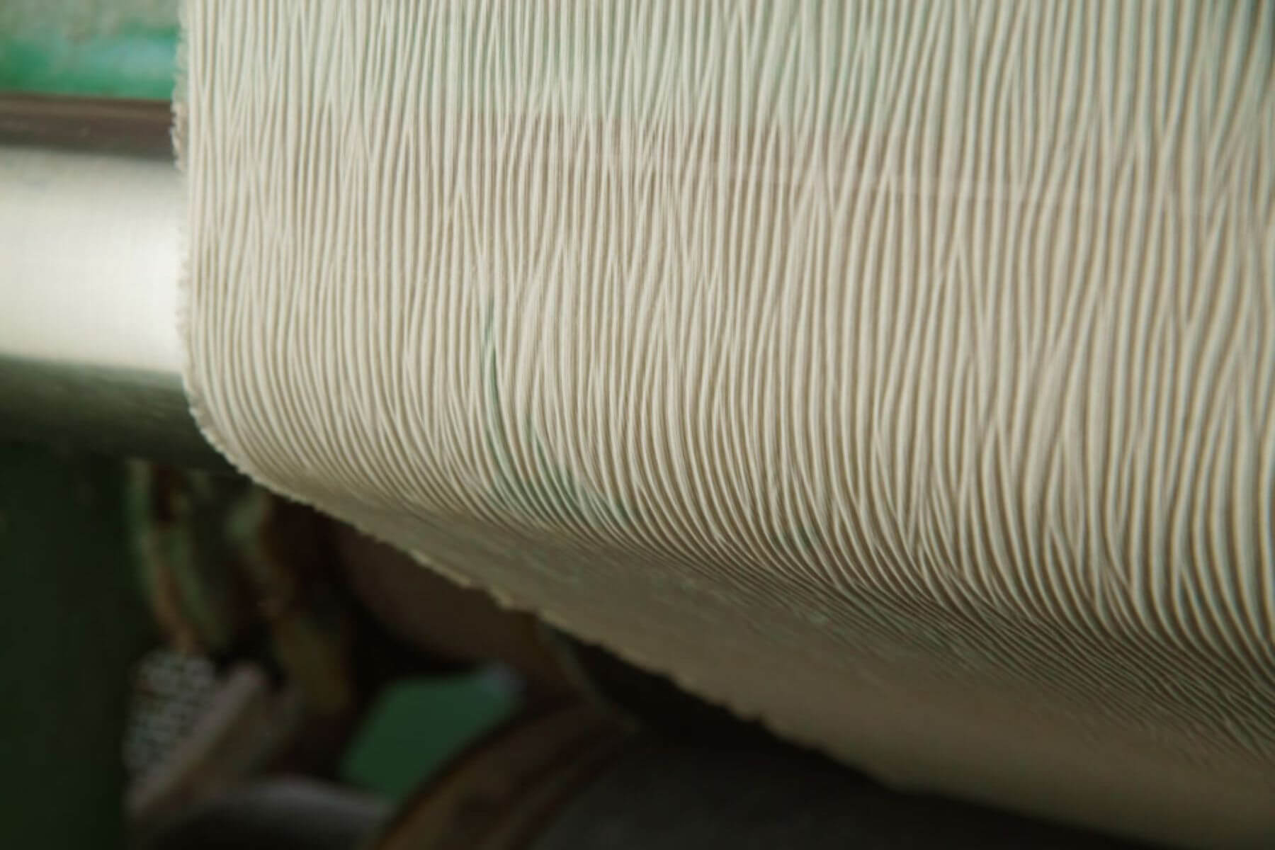 呼應品牌所堅持的在地職人精神,YOORYUU的製程——從整理經線到編織、壓花,再到定型——這些在高島地區所完成的工藝步驟,Plantation皆參與其中,最終,編織後的布料,再透過帶有凹凸不平表面的滾輪壓出波紋,賦予品牌布料特色的同時,也從中增加現代感元素。