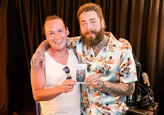 Post Malone還是一位高階阿宅玩家,熱愛卡牌遊戲《魔法風雲會》,熱衷程度甚至讓他在2023年斥資超過200萬美元(約6000多萬台幣)買下了全球僅此一張的「至尊戒」(One Ring)卡牌,創下該遊戲史上最昂貴單張卡牌的交易紀錄,並與遊戲官方合作推出專屬系列卡包,將自己的刺青圖案與生活點滴融入卡牌設計中,成為真正玩遊戲玩到極致的專業戶。
