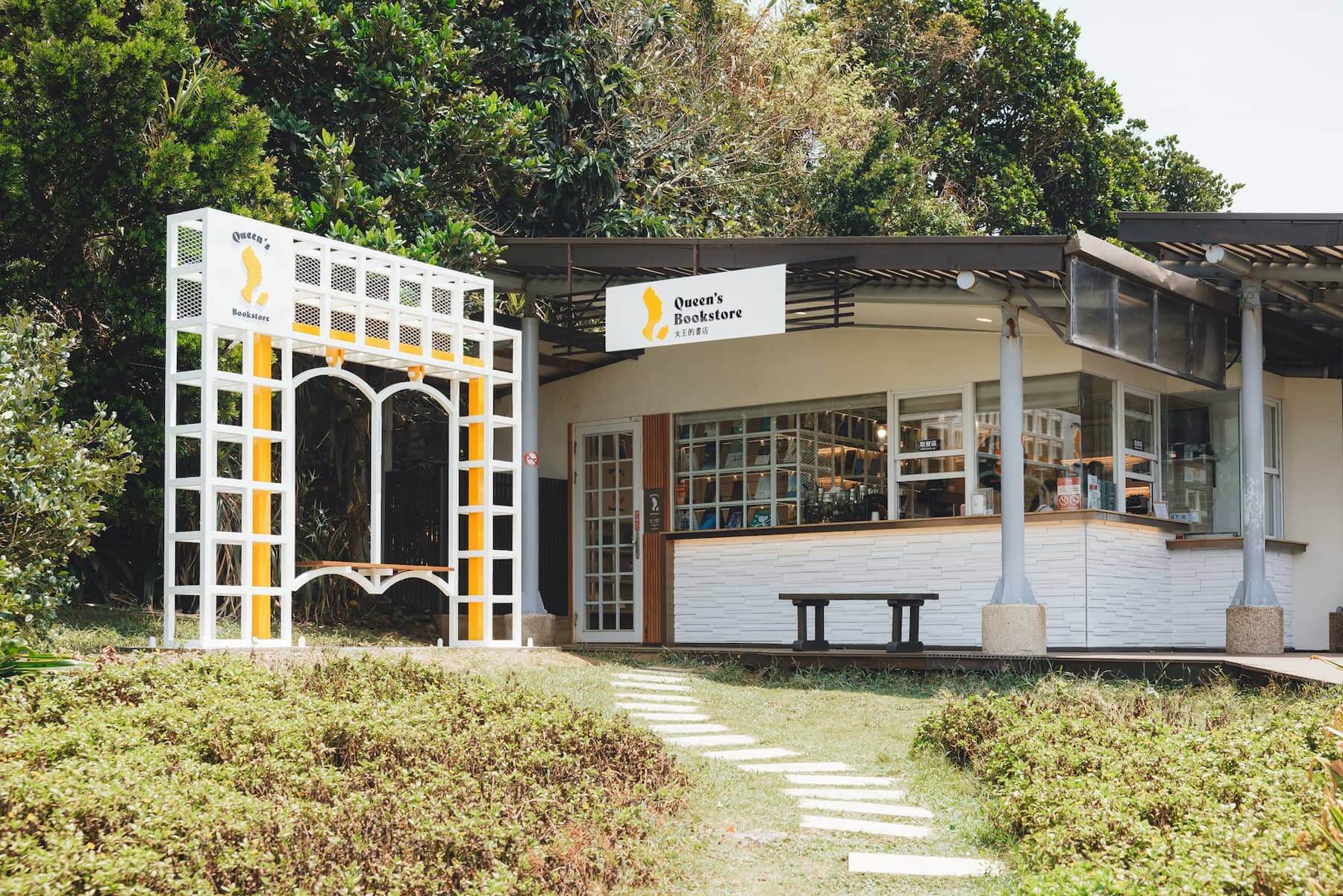 在野柳地質公園的步道上,遠遠就能看見「女王的書店」佇立於海岸邊。書店的前身是園區販賣小舖,青鳥文化計畫將其改造成復合型書店時,想像的是這樣的畫面:「走在荒島上覺得很累很累,看到遠處有間小屋可以休息就朝著那裡加快腳步,走近一看才發現:原來是一間書店。那是一件多浪漫的事情。」於是團隊以此為設計概念,打造以閱讀、咖啡與小食提供遊客身心補給的白色小屋。