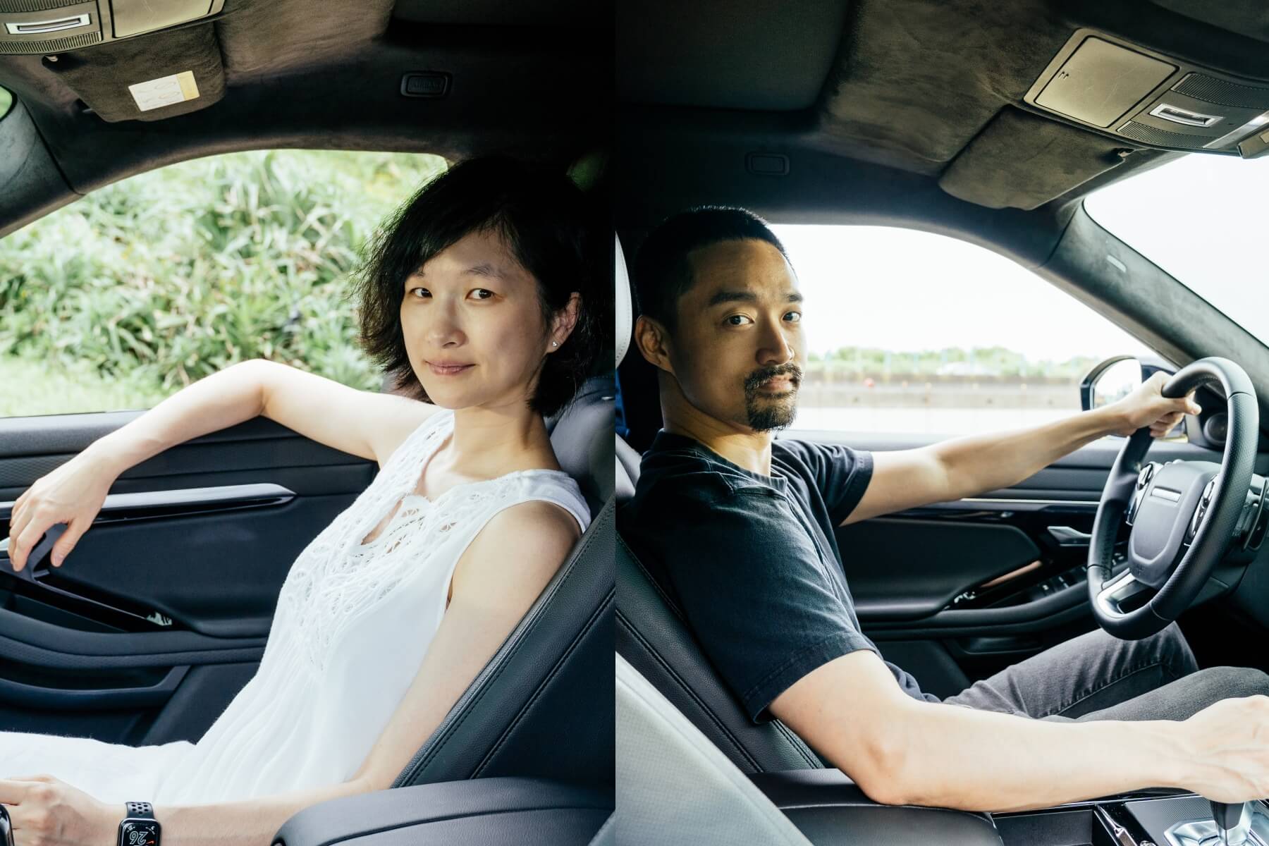 這對熱愛分享創意的夫妻,喜歡從不同角度觀察世界,連交往前觀察對方的視角也相當特別。這天在Range Rover Evoque車內,林業軒擔任駕駛、張佳家在副駕駛座,兩人打趣地分享對彼此的第一印象。張佳家談起剛相識時的林業軒,如何在她心中留下好印象:「他整個人看起來很不愛笑、很嚴肅,但好像有股隱隱的幽默感。實際交流後發現他看很多不同的東西,會突然講出我不知道的事,我就開始覺得這個人很有趣。」林業軒接著說:「其實我一直覺得佳家很厲害,她歷史系畢業後出國念插畫、動畫,回台灣後從事動畫和教育相關內容,比我早創業,覺得她在工作上的專注力和企圖心比我強很多,很了不起。」張佳家聽畢立刻補充:「他平常不會和我說這些!難得聽到這些肺腑之言。」言談之間,可以感受這對夫妻的日常,想必也時時圍繞機智逗趣的交流。